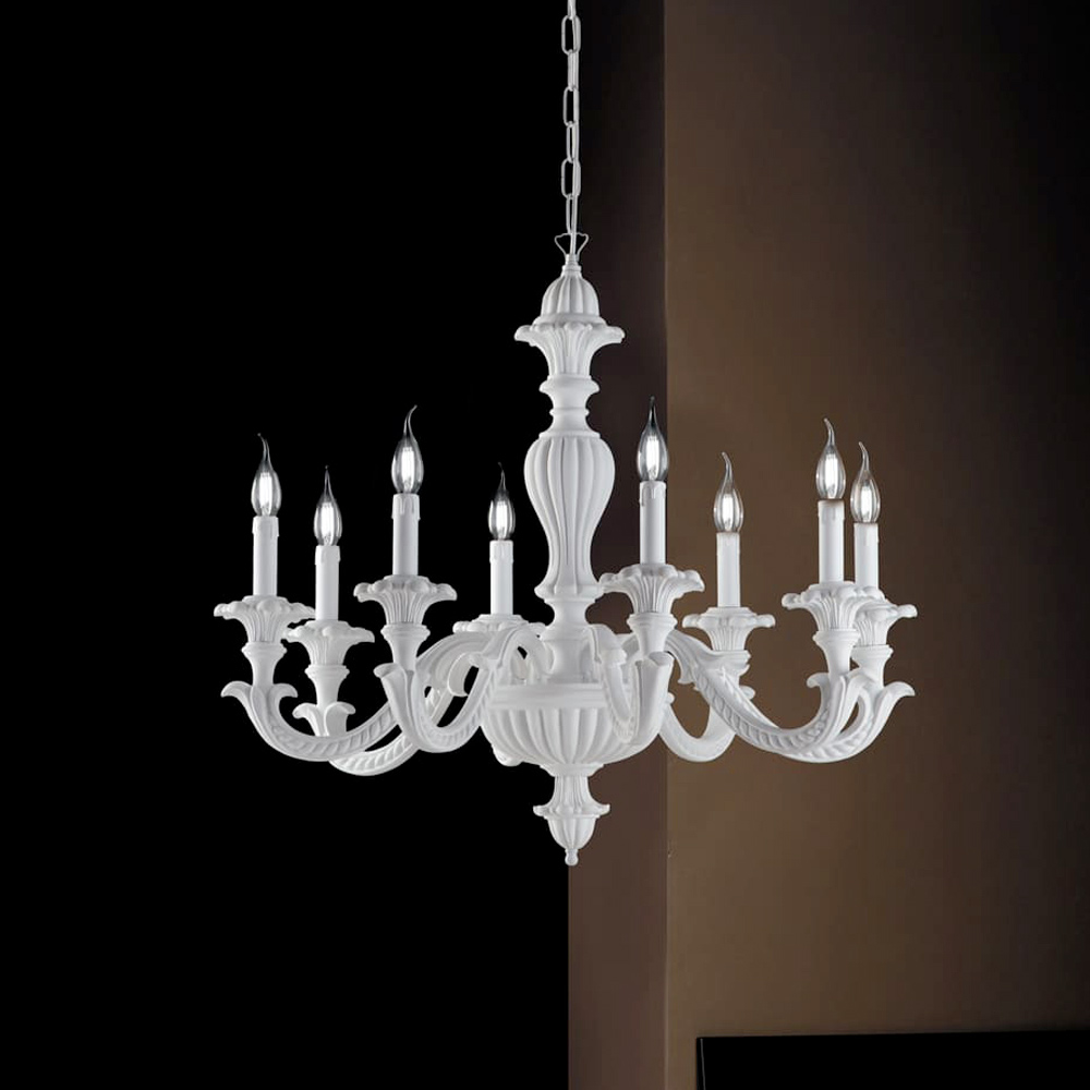 تتوفر هذه الثريا بتشطيب أبيض رث رقيق، بطابع رومانسي ومضيء، أو بنسخة عاجية ثمينة مع ورق ذهبي ، مثالية للأماكن الأنيقة والراقية، وتتناسب هذه الثريا بشكل متناغم مع غرف المعيشة وغرف الطعام والمداخل المهمة والصالات الكلاسيكية وبيئات المشاريع المرموقة .