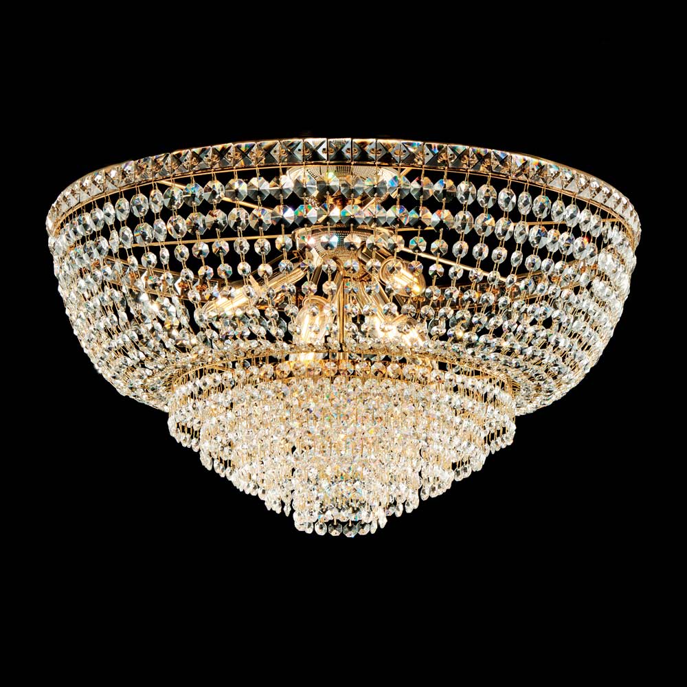 تُبرز اللمسة النهائية الذهبية المصقولة بريق المواد وتضفي على مصباح السقف طابعًا فخمًا، مما يجعله مثاليًا لغرف المعيشة الأنيقة، وغرف الطعام، وغرف النوم الرئيسية، والمداخل الفخمة، والمساحات التجارية الراقية . عنصر إضاءة يجسد براعة الحرفية الإيطالية ، إذ يجمع بين المواد الثمينة والحرفية الدقيقة في تصميم خالد.
