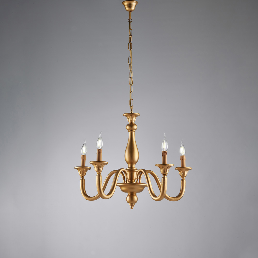 أنيقة وخالدة، تُجسّد هذه الثريا الخشبية الكلاسيكية المصنوعة يدويًا روعة الطراز الإيطالي التقليدي، إذ تجمع بين الأشكال المتناغمة والتشطيبات الجذابة. يضفي هيكلها النحيل، بأذرعه المنحنية وإضاءته الشبيهة بالشموع ، خفة بصرية ويخلق جوًا دافئًا ومرحبًا، مما يجعلها مثالية للمساحات ذات الأناقة الخالدة.