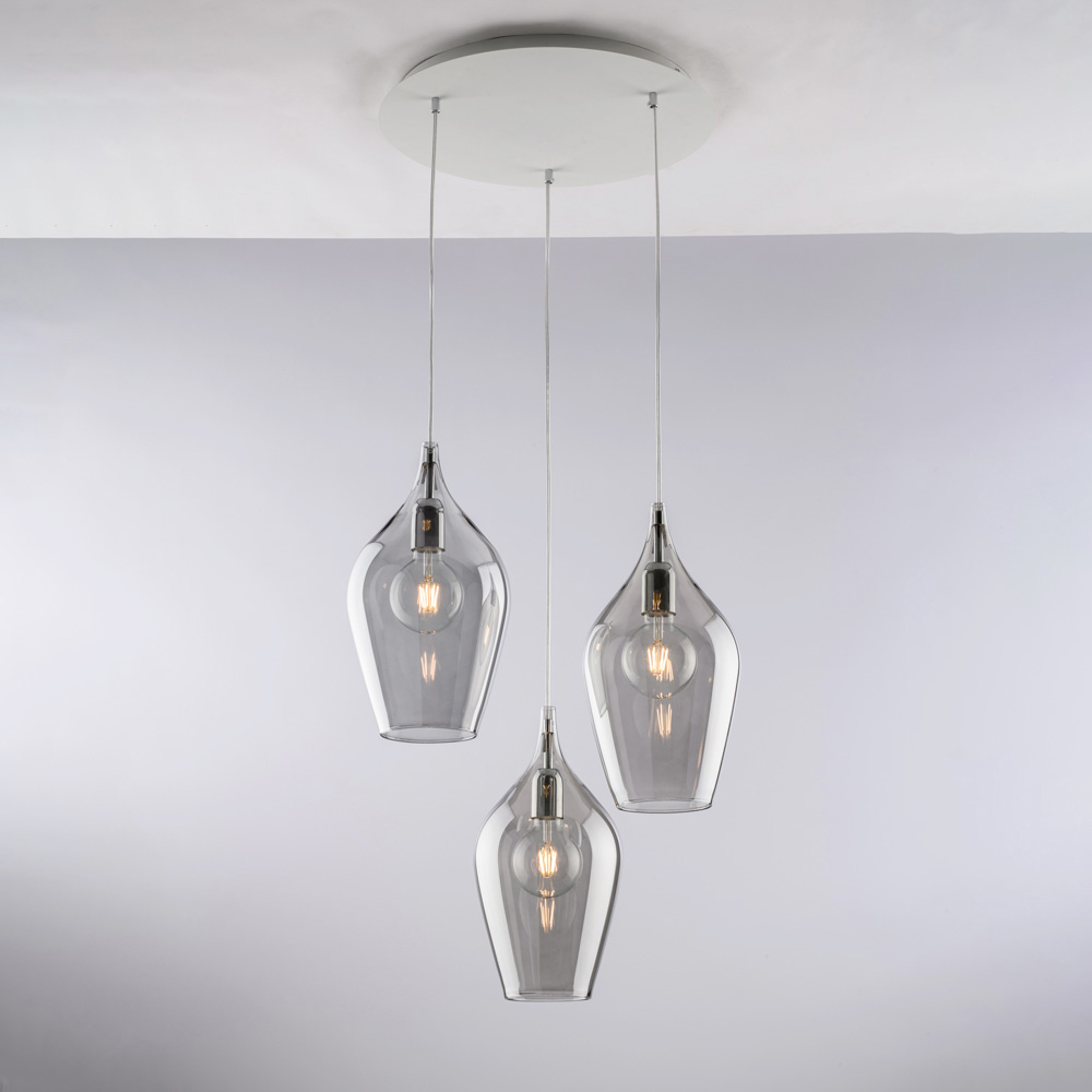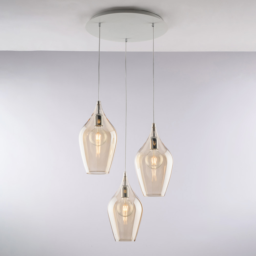 تتوفر هذه الثريا المعلقة بتشطيبات شفافة ، أو كهرمانية ، أو رمادية ، مما يتيح لك تخصيص مساحتك وفقًا لأسلوبك المفضل: مشرقة ومتجددة الهواء في النسخة الشفافة، دافئة وجذابة في النسخة الكهرمانية، وعصرية وأنيقة في النسخة الرمادية. إنها مثالية لغرف المعيشة ، وغرف الطعام ، وجزر المطابخ ، والمساحات المفتوحة ، والمساحات التجارية ذات التصميمات العصرية .
