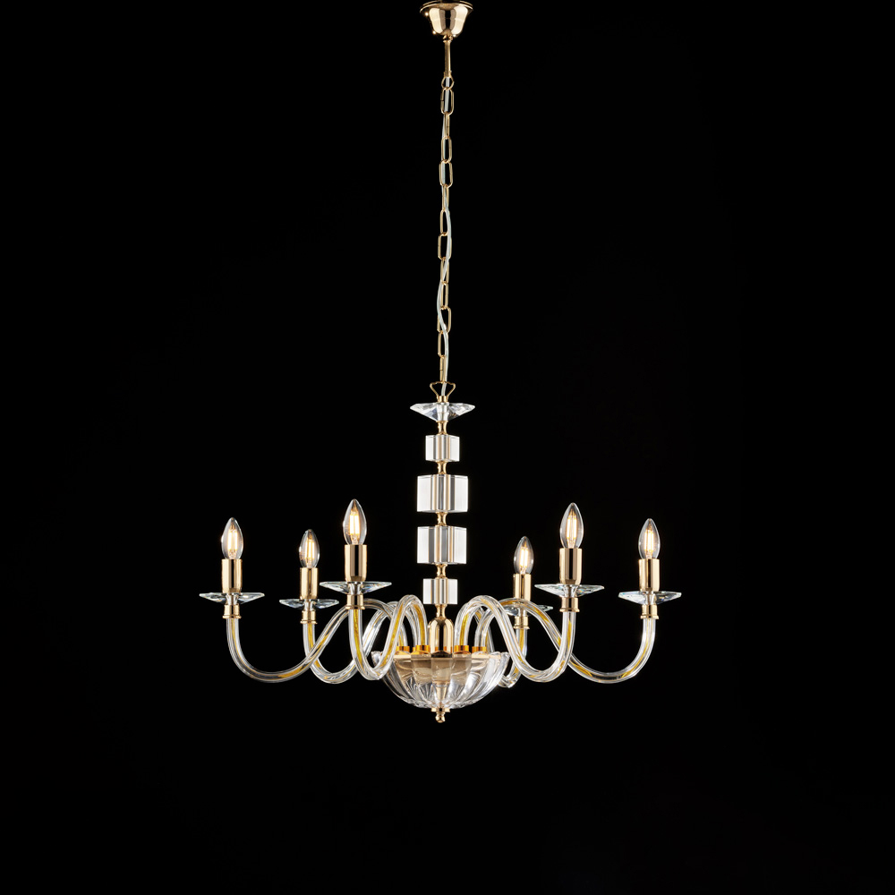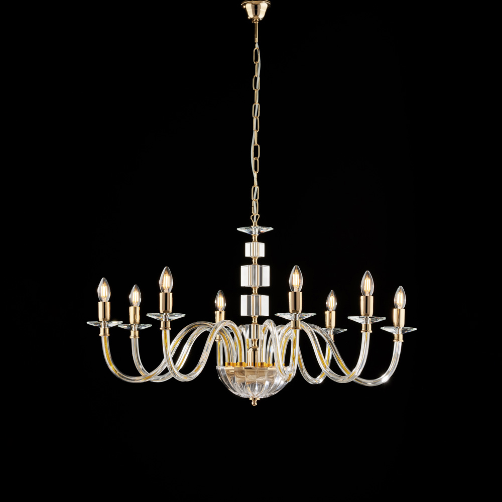 تُضفي اللمسة النهائية الكريستالية/الذهبية المصقولة بريقًا مميزًا على الثريا، وتُبرز أشكالها المتناسقة، مما يجعلها مثالية لغرف المعيشة الفخمة ، وغرف الطعام الأنيقة ، والصالونات الكلاسيكية ، والفنادق الفاخرة ، والمساحات التجارية الراقية . كل تفصيلة فيها تُجسّد براعة الصناعة الإيطالية .