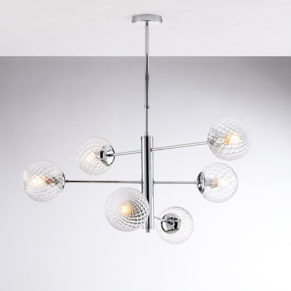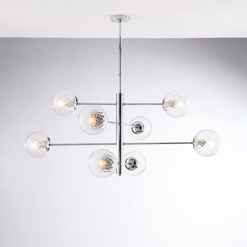 تتوفر هذه الثريا المعلقة بتشطيبات من الكروم المصقول أو البرونز ، وتتناغم بسلاسة مع غرف المعيشة العصرية ، وغرف الطعام ، والمساحات المفتوحة ، والتصاميم الداخلية ، والمساحات التجارية . يعكس مزيج المعدن والزجاج براعة الصناعة الإيطالية ، مع اهتمام خاص بالتفاصيل والتناسق.