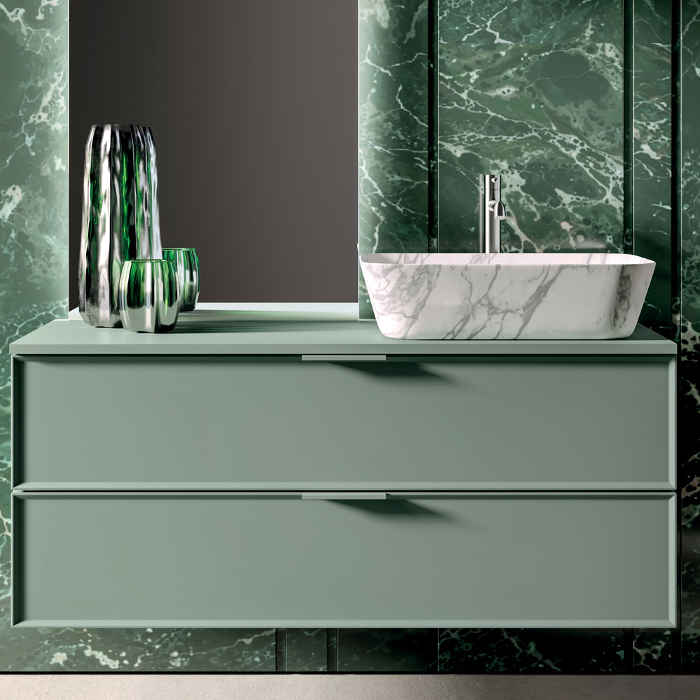 اقتراح لأثاث حمام فاخر ، مصمم لأولئك الذين يرغبون في حمام عصري وعملي مع الاهتمام بالتفاصيل، وهو مثالي أيضًا للمشاريع التجارية والسكنية عالية المستوى .