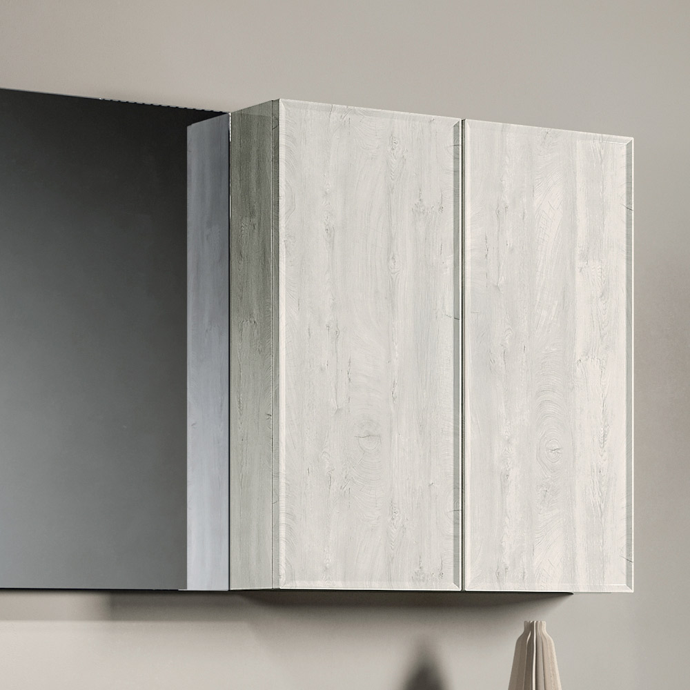 تتميز خزانة الحمام المعلقة المصنوعة من خشب البلوط الألاسكي بلمستها النهائية الطبيعية الفاتحة، مما يعزز إشراق الغرفة ويتكيف بشكل مثالي مع الديكورات العصرية والبسيطة.