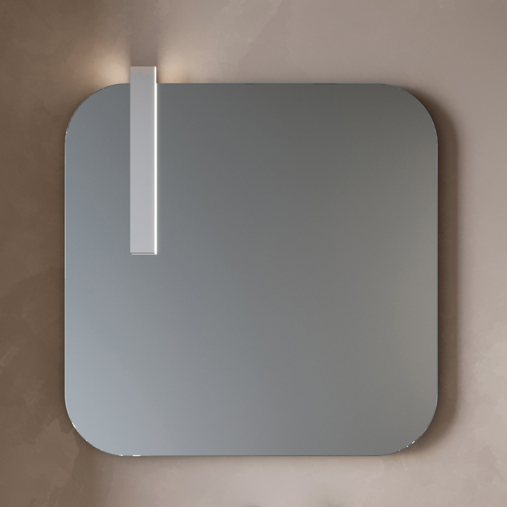 تضفي المرآة ذات الشكل المميز طابعًا وشخصية على التصميم، بينما يضمن مصباح LED ذو اللمسة النهائية من الكروم إضاءة أنيقة وعملية، مثالية لمنطقة الحوض.