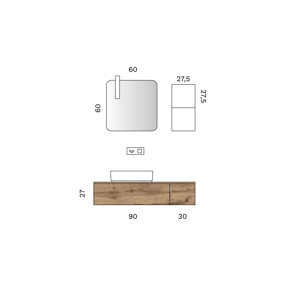 يتألف الهيكل من وحدات قاعدة معلقة مزودة بأدراج ، مصممة لضمان إدارة فعّالة للمساحة وتنظيم مثالي للملحقات. ويحافظ نظام السيفون المدمج على خطوط نظيفة وبسيطة، مما يعزز التوازن الشكلي للتصميم العام.