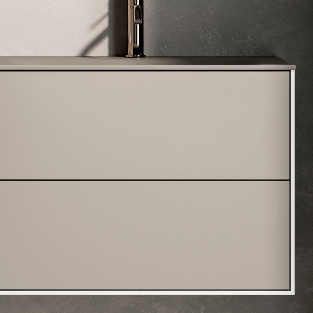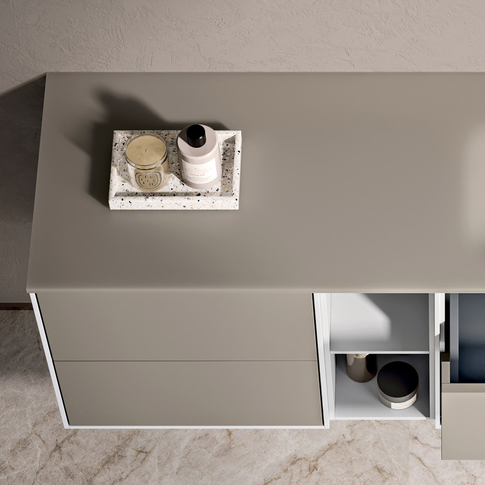 حل مثالي لمن يبحثون عن خزانة حمام معلقة عصرية بلون رمادي فاتح ، قادرة على الجمع بين الجماليات البسيطة والمواد الراقية والعملية اليومية القصوى.