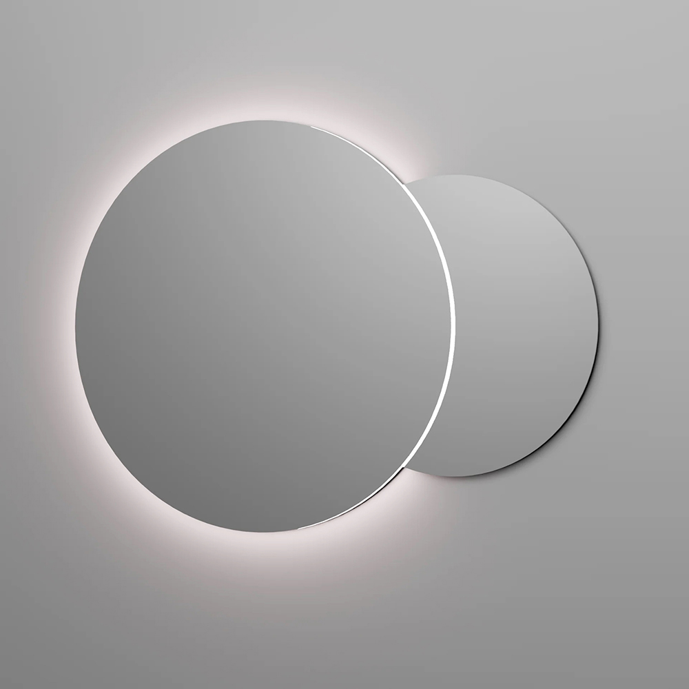 تعمل المرآتان المضاءتان من الخلف على زيادة سطوع المكان، مما يخلق جواً أنيقاً وجذاباً. ويحدد الضوء المدمج الأحجام ويساهم في تصميم مساحة عصرية وعملية.