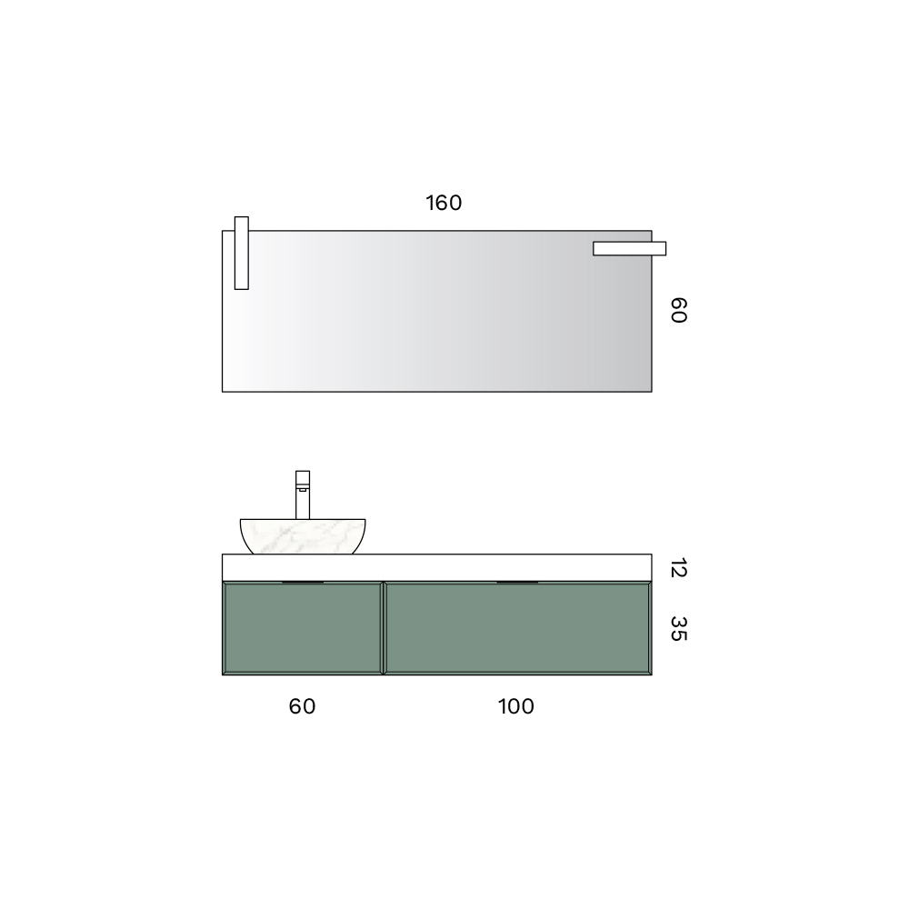 اقتراح لأثاث حمام فاخر ، مثالي لأولئك الذين يرغبون في حمام مصمم عملي وأنيق ومتناسق تمامًا، وهو مناسب لكل من السياقات السكنية ومشاريع العقود عالية المستوى .