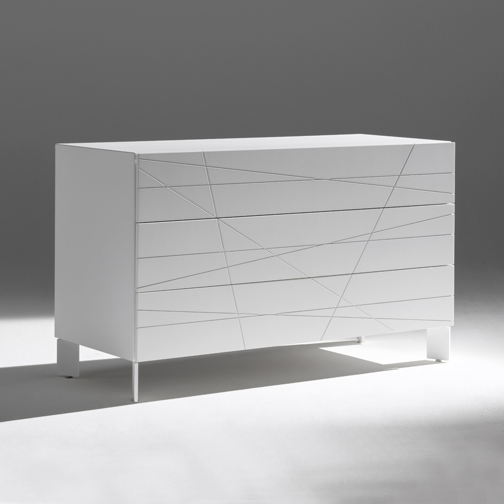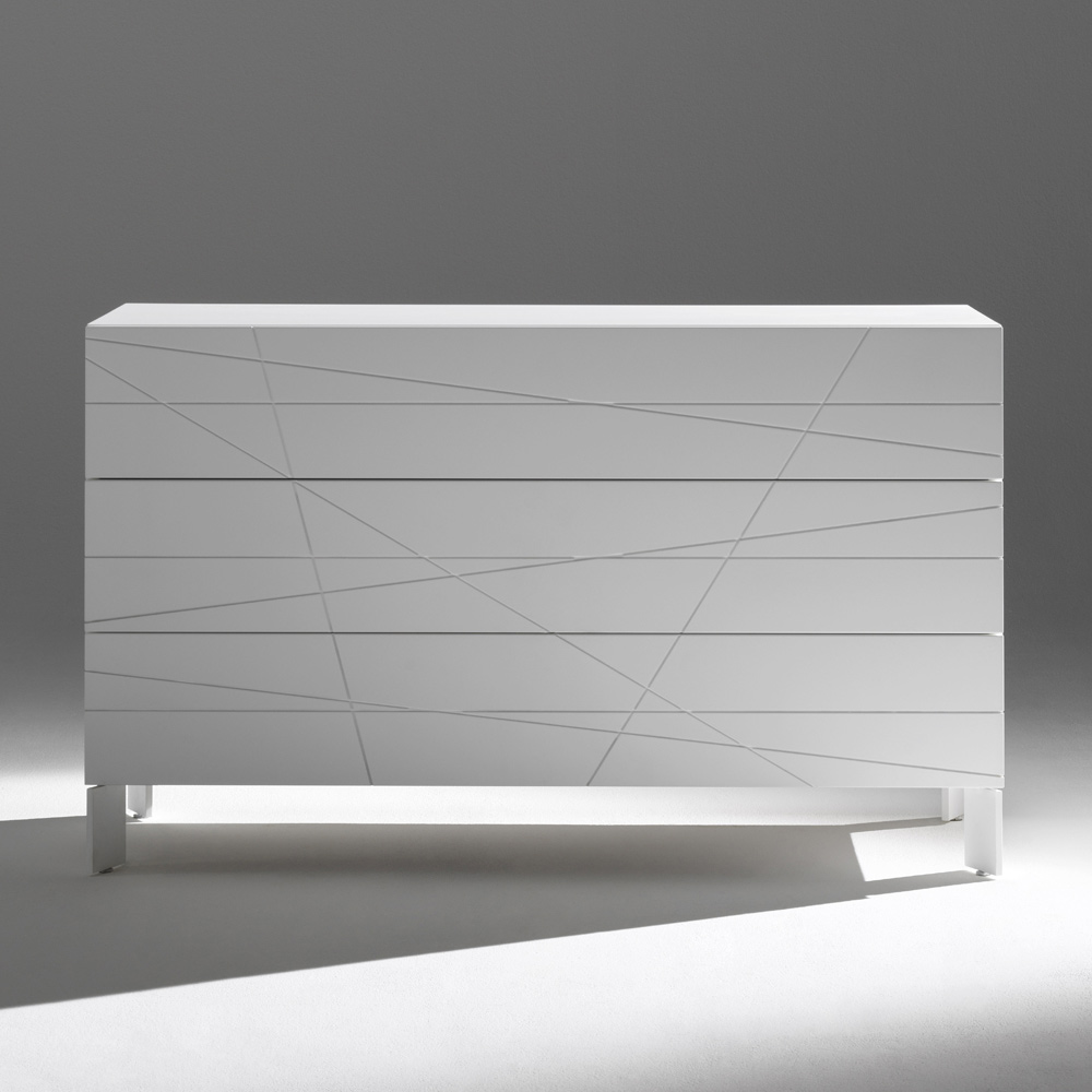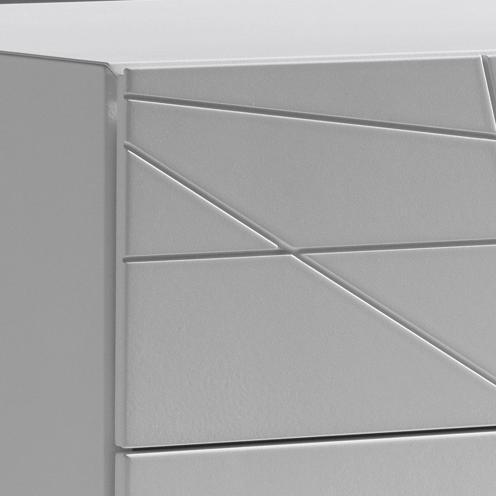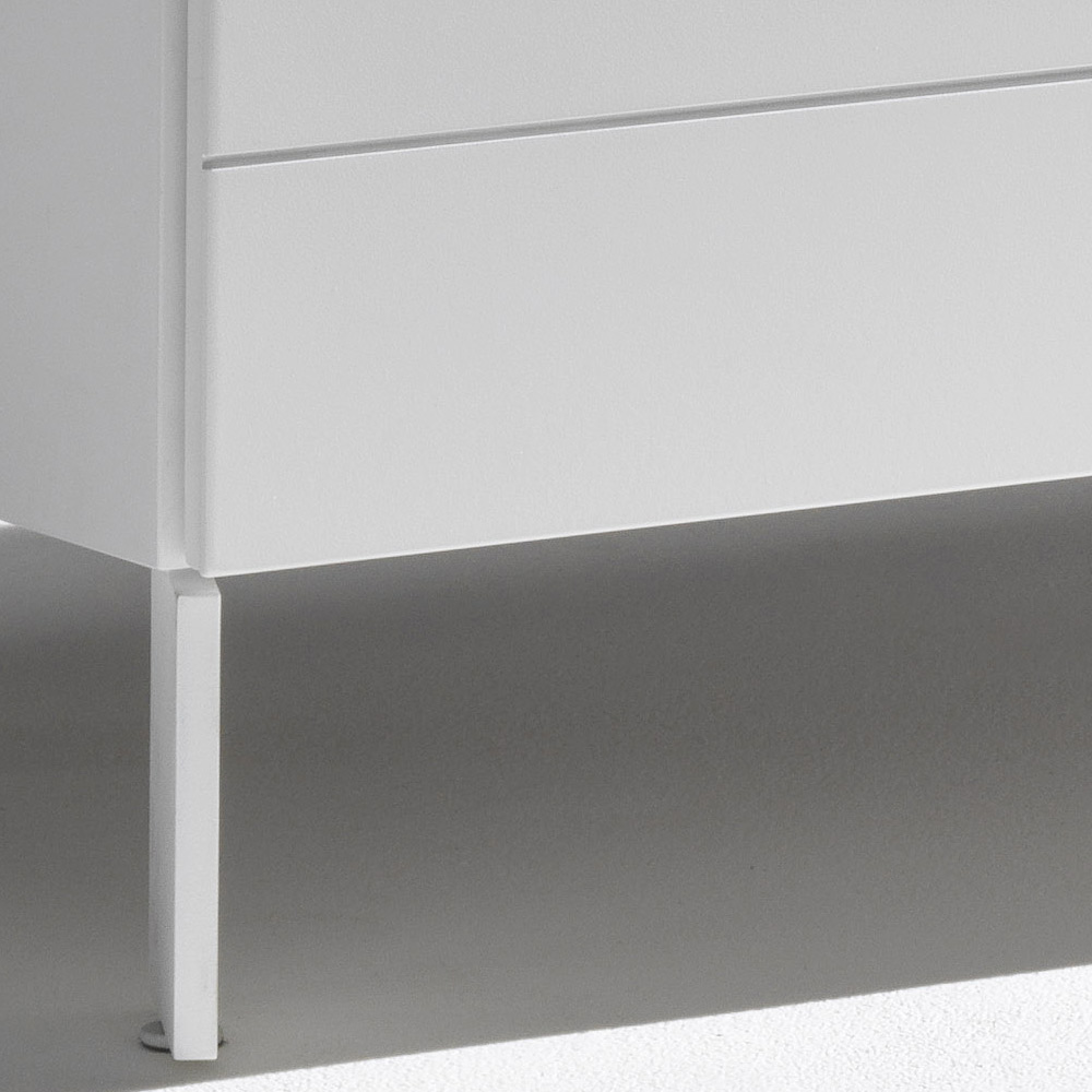 الهيكل مصنوع من ألواح خشبية مطلية ، بينما تم تشطيب واجهات الأدراج المصنوعة من MDF بدهانات البولي يوريثان عالية الجودة، للحصول على سطح مقاوم وموحد وطويل الأمد.
