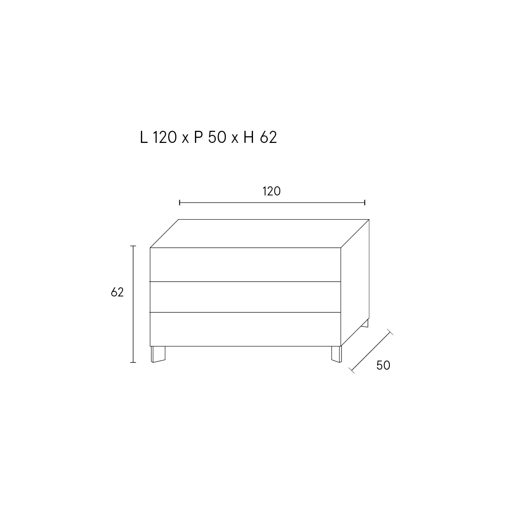 تم تجهيز الخزانة بثلاثة أدراج كبيرة ، مثالية لتنظيم البياضات والأغراض الشخصية، مما يضمن الوظائف والنظام دون التضحية بالجماليات.
