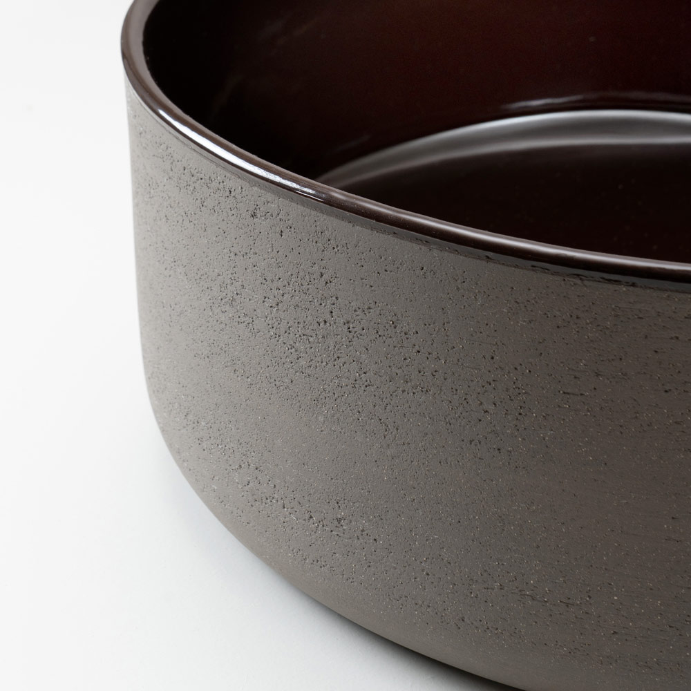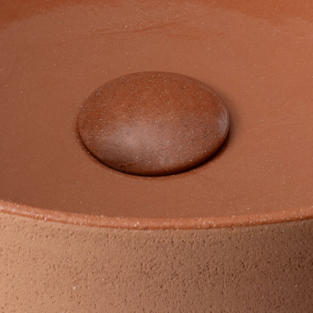 حوض الغسيل المثبت على سطح الطاولة مصنوع من الطين الطبيعي ، ويتميز بتصميمه البسيط وملمسه القوي. قطعة تصميمية تجمع بين الحرفية والبحث الجمالي، مصممة لإضفاء لمسة عصرية أنيقة على الحمام.