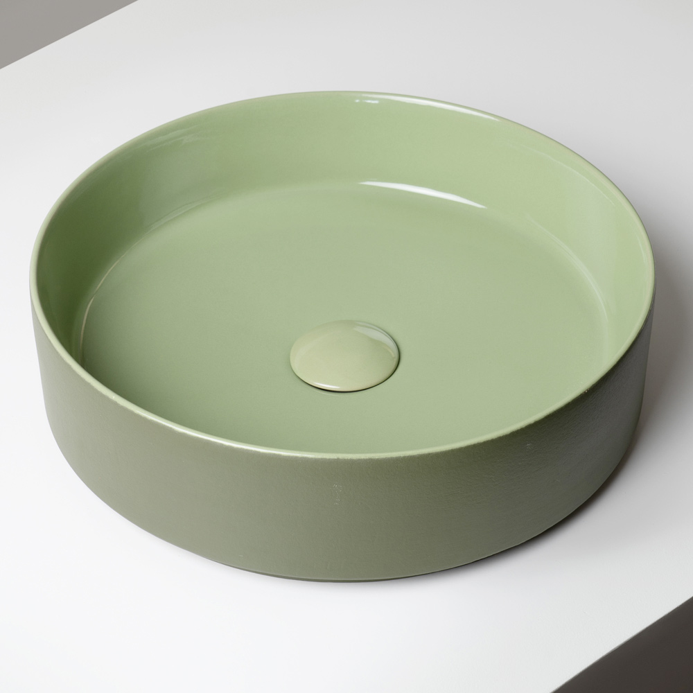حوض الغسيل المثبت على سطح الطاولة مصنوع من الخزف الحجري المصقول يدويًا ، ويجسد تصميمًا عصريًا يجمع بين البساطة الرسمية واللون المميز. صُنع بالكامل في إيطاليا ، وهو مصمم خصيصًا للحمامات العصرية ذات الطابع الفريد حيث يحتل اللون مكانة مركزية.