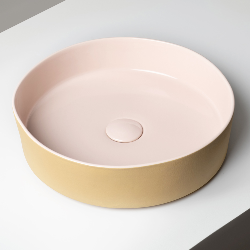 يُعزز الشكل الأساسي والمدمج تباينٌ دقيق بين السطح الداخلي اللامع والسطح الخارجي غير اللامع ، مما يخلق تناغمًا بصريًا أنيقًا بين الأسطح والألوان. أما توليفات الألوان، المستوحاة من لوحة ألوان نابضة بالحياة وراقية، فتجعل من كل حوض قطعة ديكور مميزة.