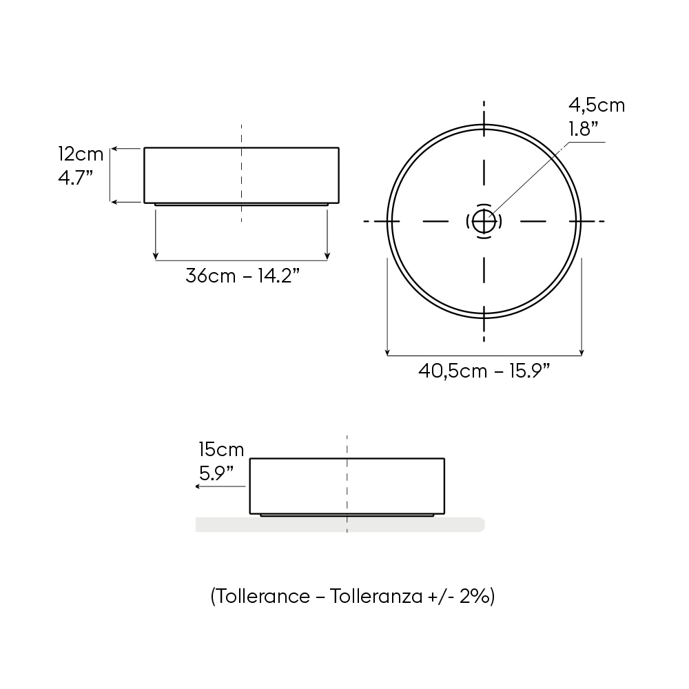 بفضل تنوع التشطيبات، يتناسب الحوض تمامًا مع الحمامات ذات الطراز الحديث أو البسيط أو الملون أو المستوحى من التصميم.