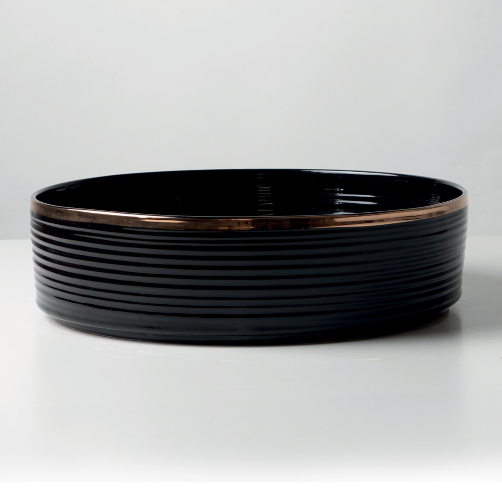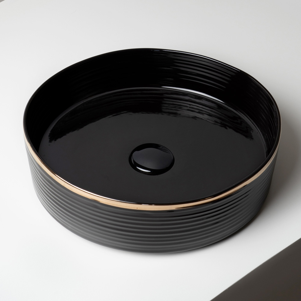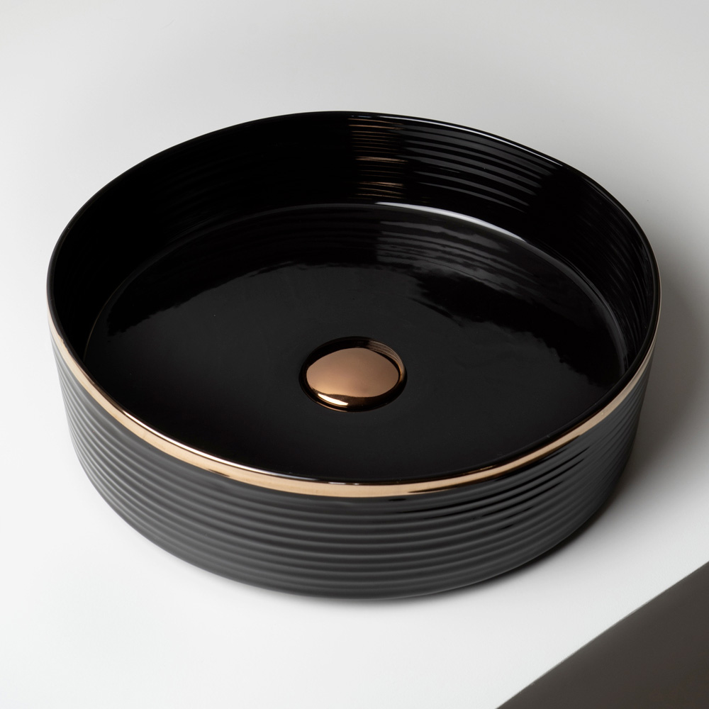 يتميز هذا الإصدار بإطار رفيع ذي تأثير معدني مصقول يدويًا على طول الحافة العلوية للحوض. تضفي هذه التفاصيل الرائعة أناقةً وشخصيةً مميزة، مما يجعل هذا الحوض جوهرةً حقيقيةً في الحمام.