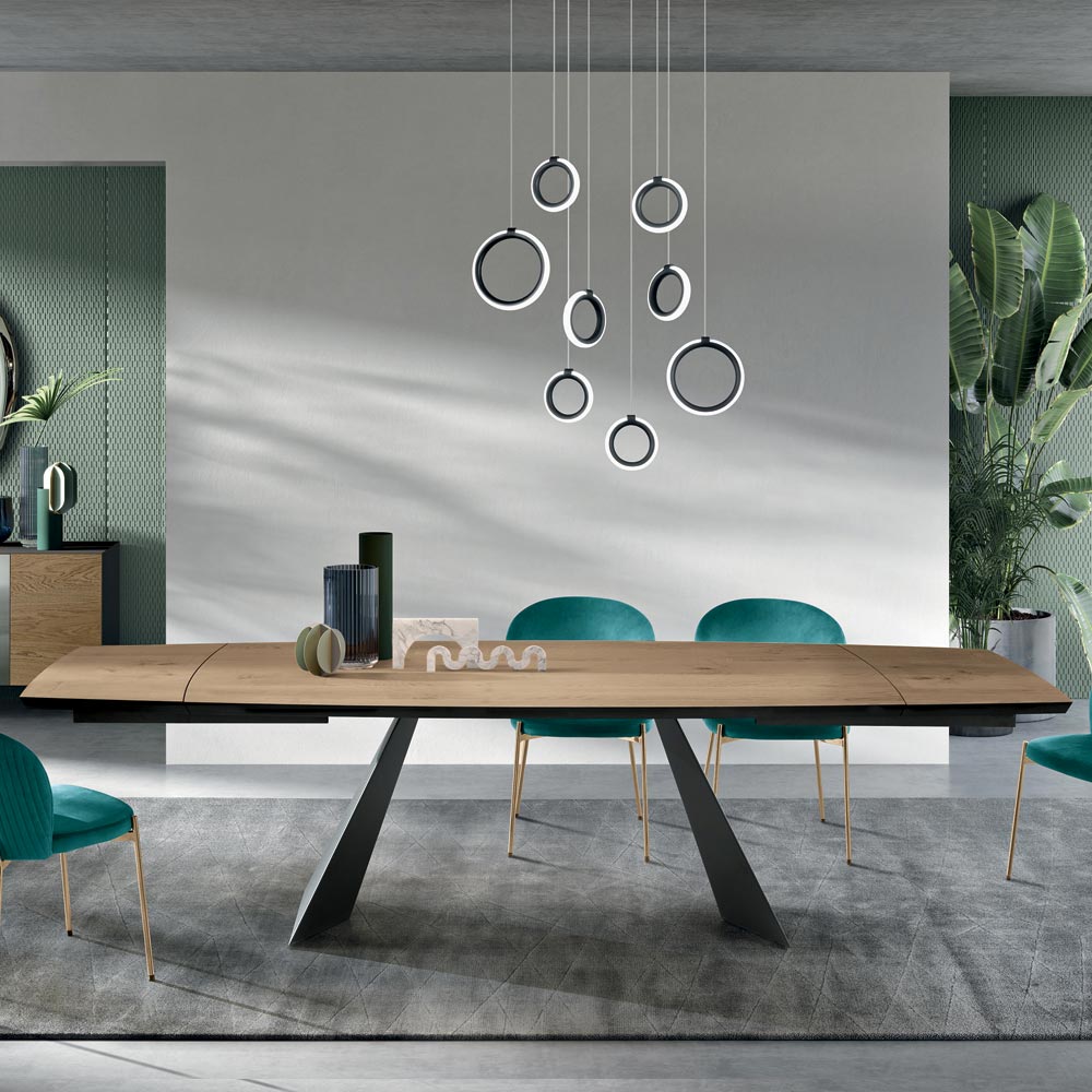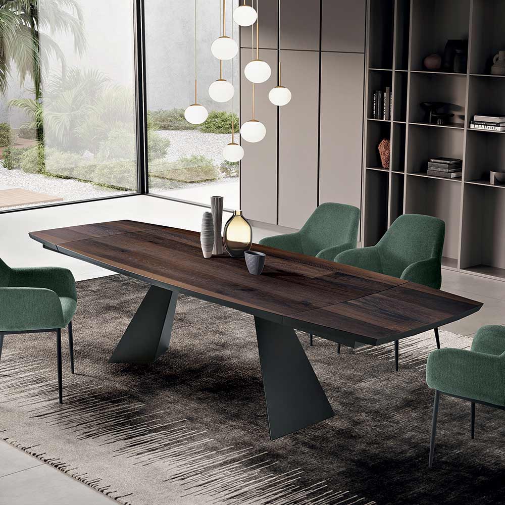 تتوفر الطاولة بنسخة قابلة للتمديد ، مثالية لتلبية الاحتياجات اليومية المختلفة واستضافة الضيوف في أوقات المرح. ألواح التمديد منفصلة وغير مدمجة في سطح الطاولة ، ويمكن إدخالها حسب الحاجة باستخدام القضبان المنزلقة.