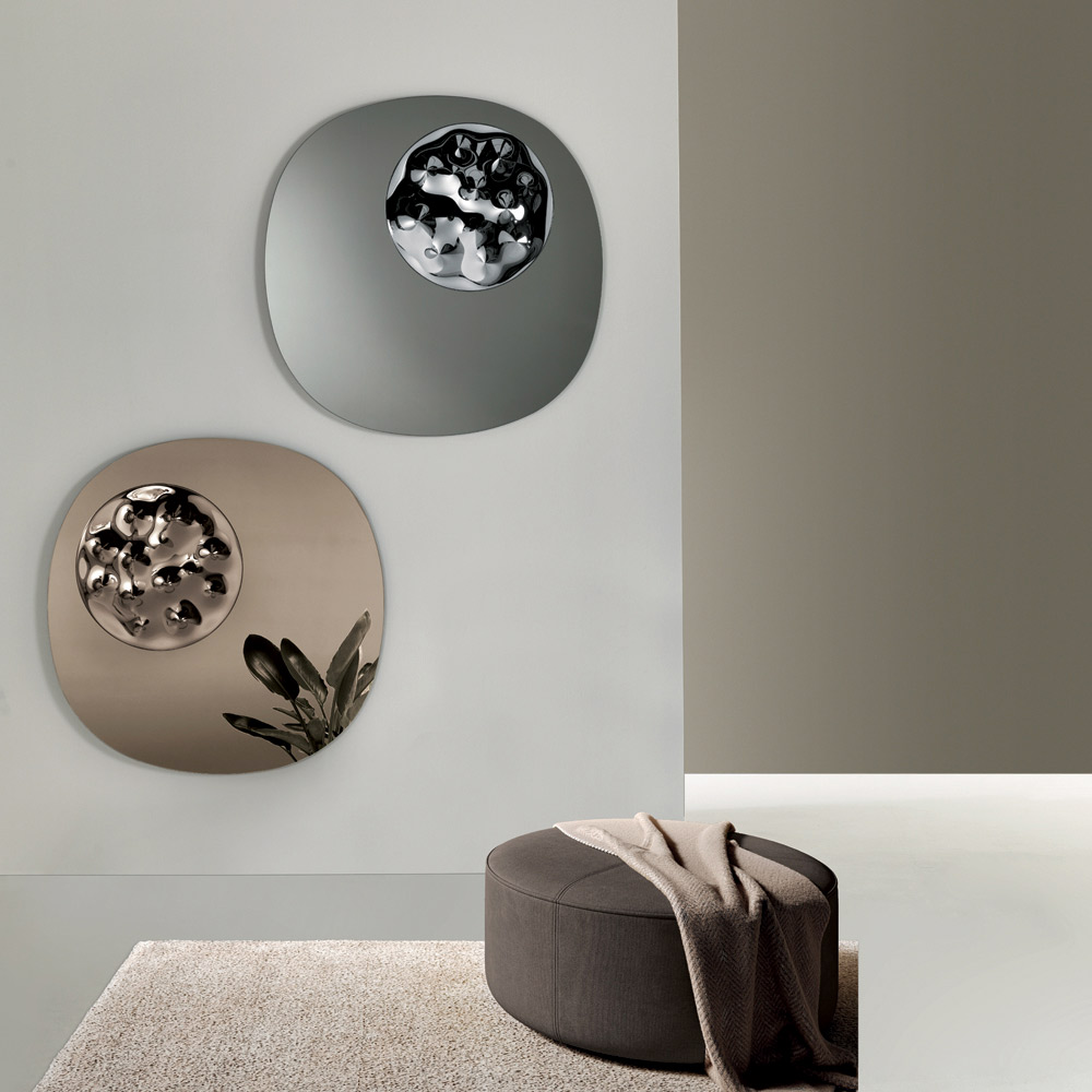 يمكن تركيب المرآة في أربعة أوضاع مختلفة بفضل إطارها الخلفي، مما يسمح بتوجيهها بما يتناسب مع أسلوب الغرفة. متوفرة بتشطيبات أنيقة من البرونز واللون المدخن ، وهي الإكسسوار الأمثل لأثاث المساحات العصرية والراقية.