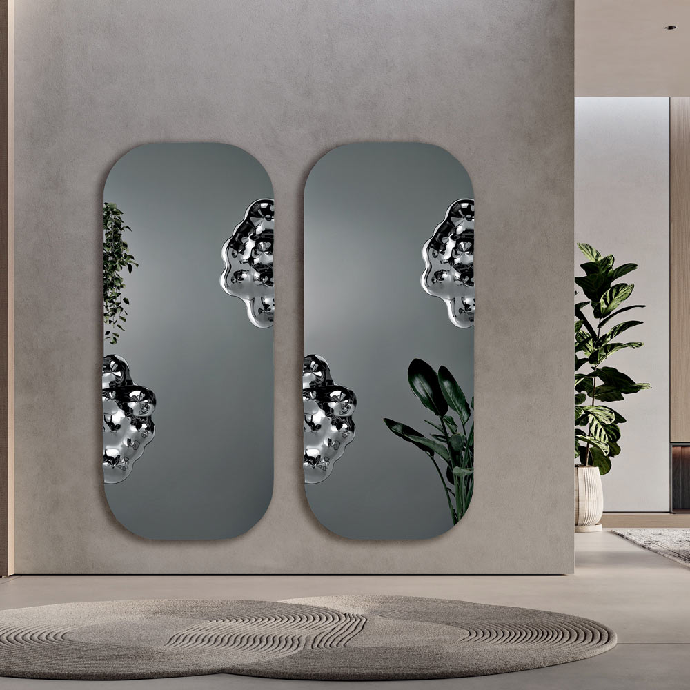 بفضل التوازن المثالي بين الدقة الهندسية والتفاصيل الزخرفية ، تمثل هذه المرآة قطعة أثاث راقية، مثالية للبيئات الحديثة والراقية حيث يصبح الجدار هو العنصر الرئيسي في المكان.