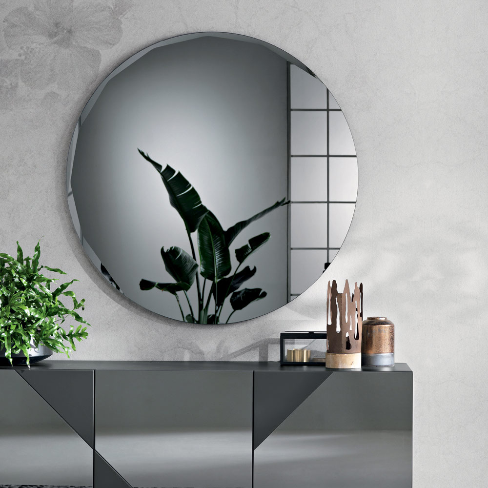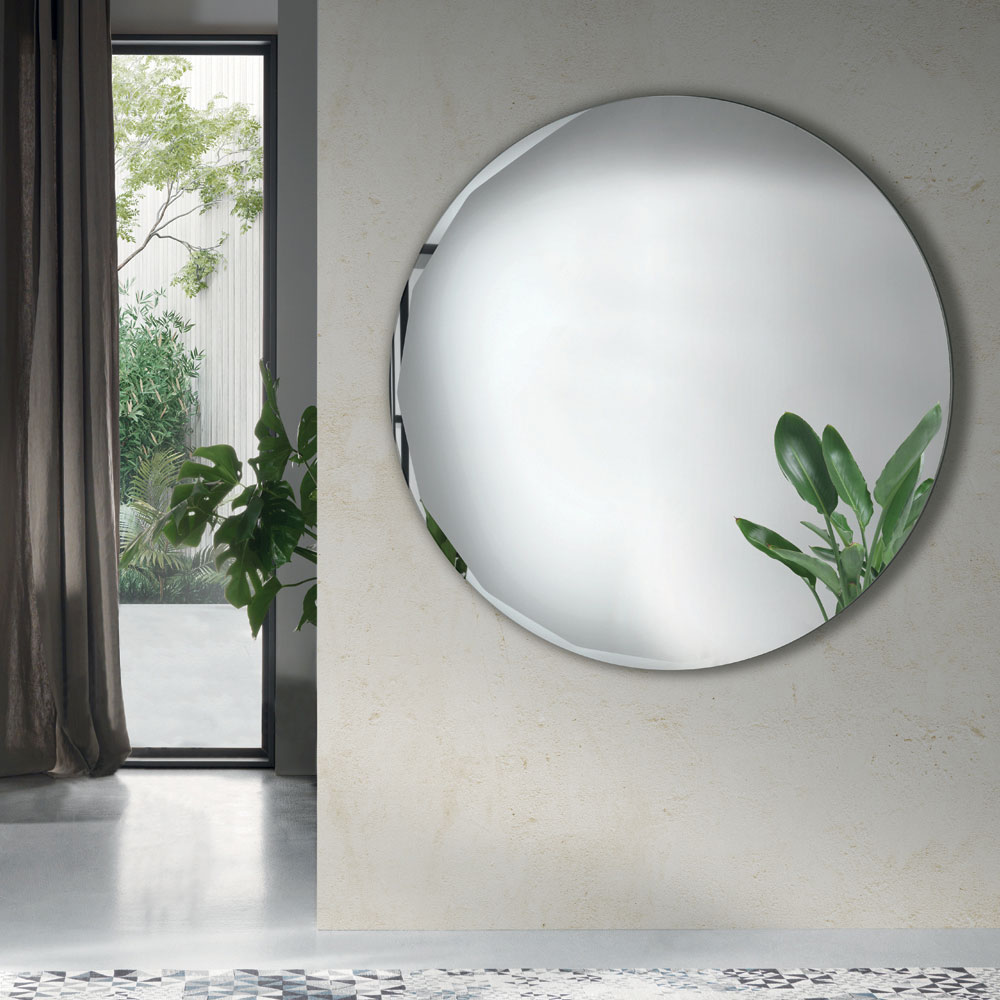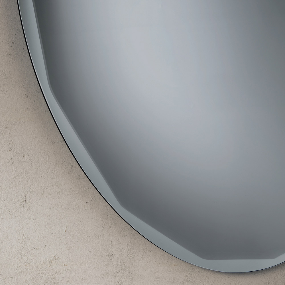 تتميز المرآة بشكلها الدائري النقي، والمزينة بحافة جانبية مصقولة تُبرز جمالها وتُعزز تصميمها البسيط. تُضفي هذه التفاصيل لمسةً رقيقةً من الانعكاسات على طول الحافة، مما يمنح السطح عمقًا وإشراقًا.