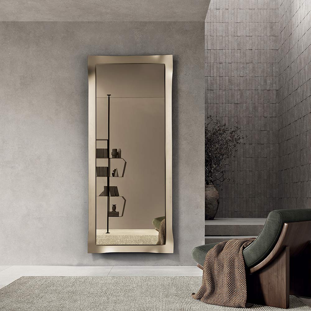 بفضل توازنها بين البساطة والرقي، تبرز هذه المرآة بأناقة على الحائط، لتصبح قطعة أثاث مثالية للبيئات الحديثة والمعاصرة، وقادرة على زيادة سطوع المكان.