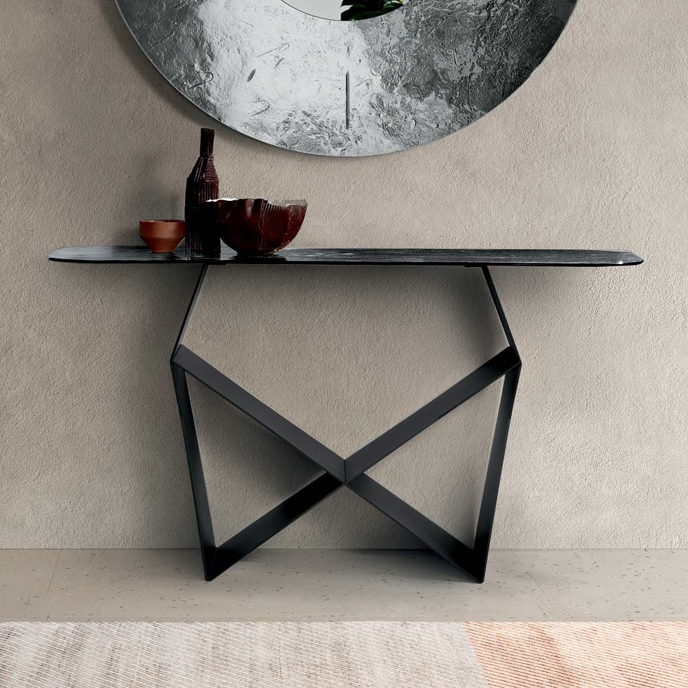 طاولة كونسول أنيقة بتصميم إيطالي فاخر، مثالية لتأثيث المدخل أو غرفة المعيشة أو الممرات بأسلوب راقٍ. يجمع تصميمها العصري بين خفة المظهر وجمالية التصميم، محولاً عنصراً وظيفياً إلى إضافة جمالية مميزة.
