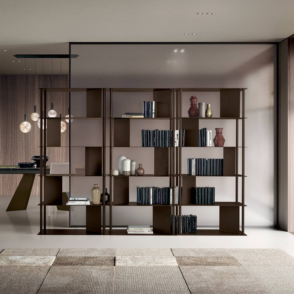 خزانة كتب أنيقة بتصميم إيطالي فاخر، مثالية لتأثيث غرفة المعيشة أو المكتب أو الممرات بأسلوب عصري. يتميز تصميمها المعاصر بهيكلها الخفيف الوزن ذي الطابع المعماري، مما يضفي على أي مساحة توازناً وشخصية مميزة.