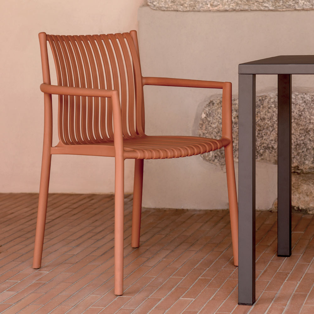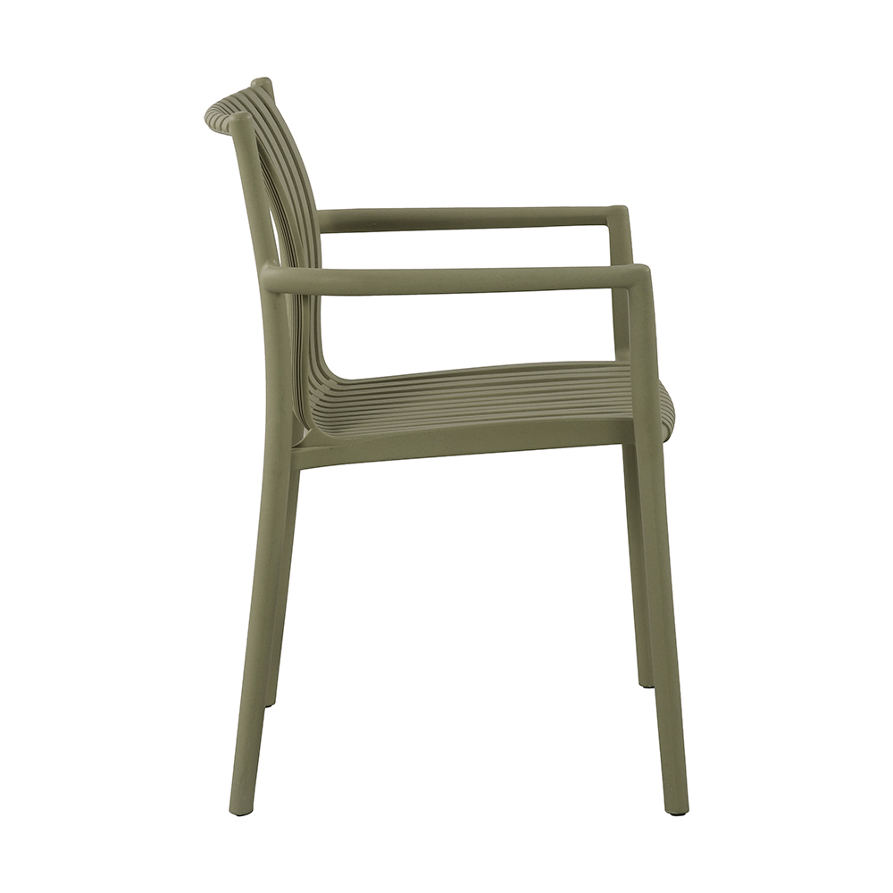 المادة مقاومة للأشعة فوق البنفسجية ، مما يضمن ألوانًا زاهية وأسطحًا ثابتة حتى بعد التعرض الطويل لأشعة الشمس. بتصميمه العصري الخطي ، يتكيف هذا الكرسي بسهولة مع مختلف البيئات، من الحدائق إلى الشرفات، إلى المساحات الصغيرة مثل المقاهي والفنادق.