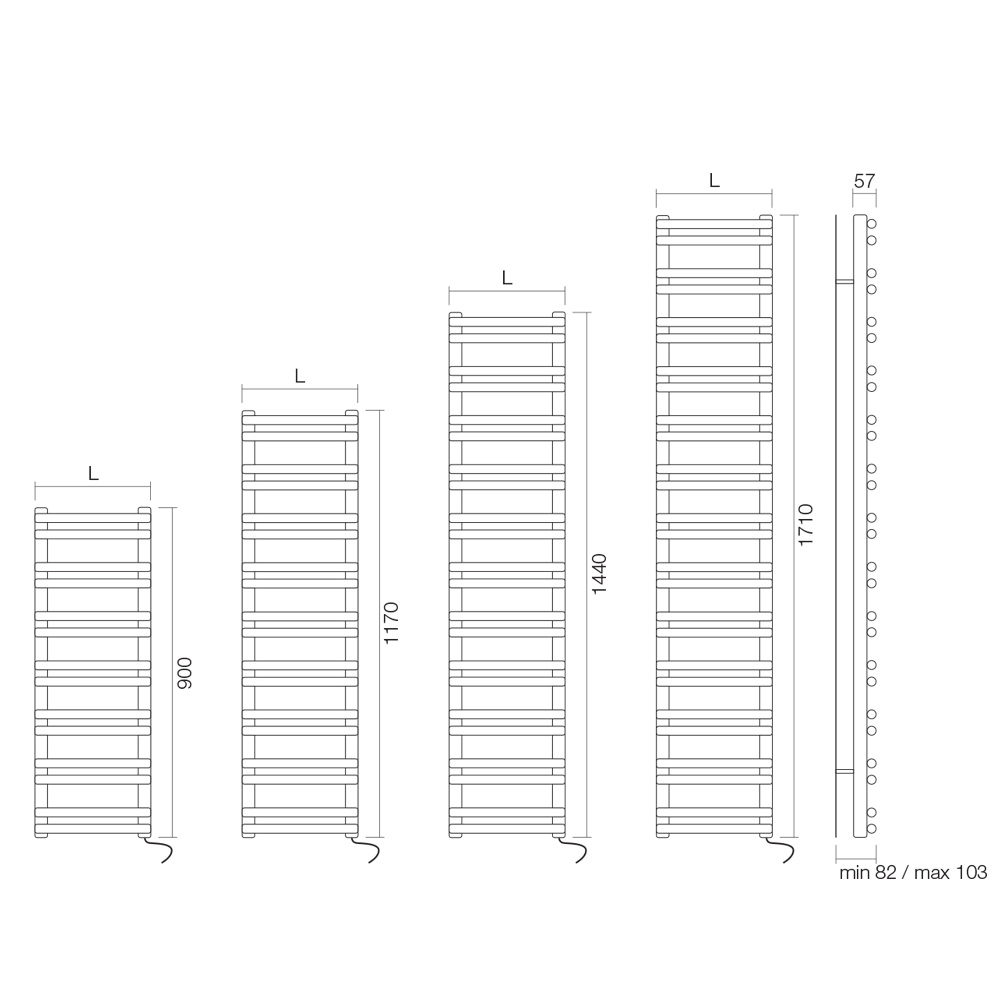 - الطول 60 سم – العمق 8.2 سم – الارتفاع 171 سم – القدرة 900 واط