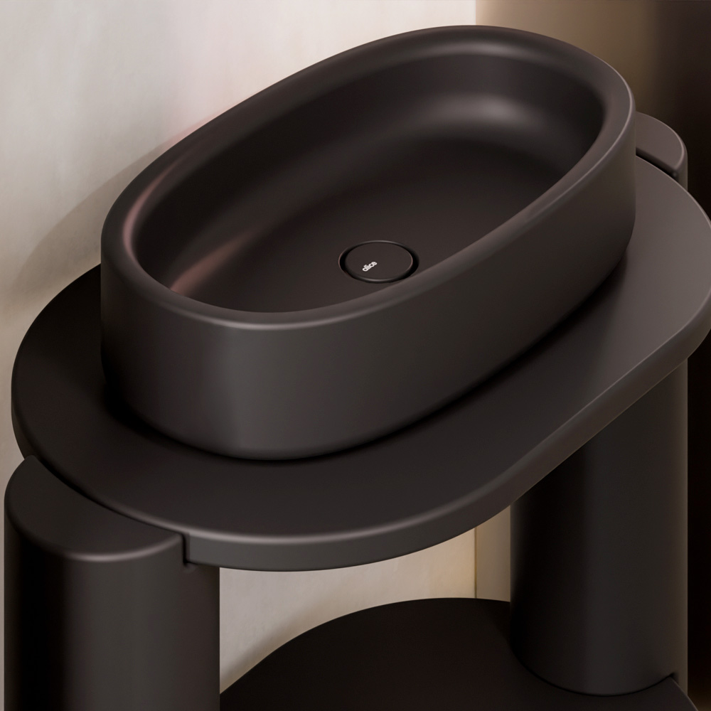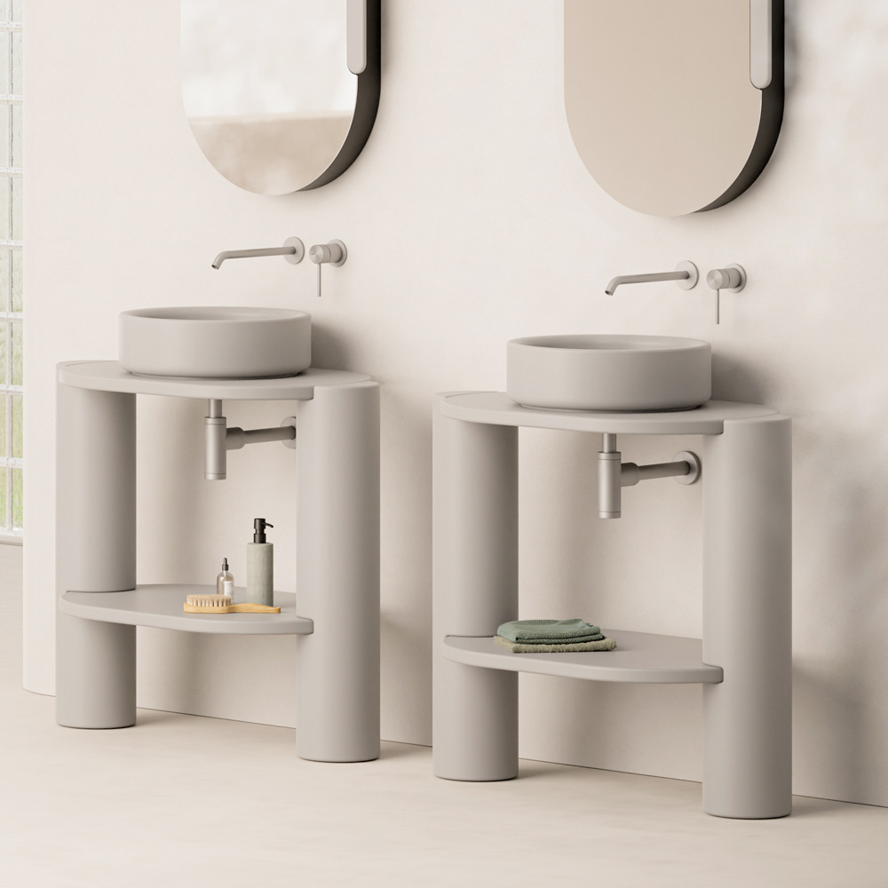 ملحق أثاث يجمع بين الخطوط العصرية والأشكال الهندسية الناعمة ، مصمم لأولئك الذين يبحثون عن حمام أنيق وعملي وخارج عن المألوف.