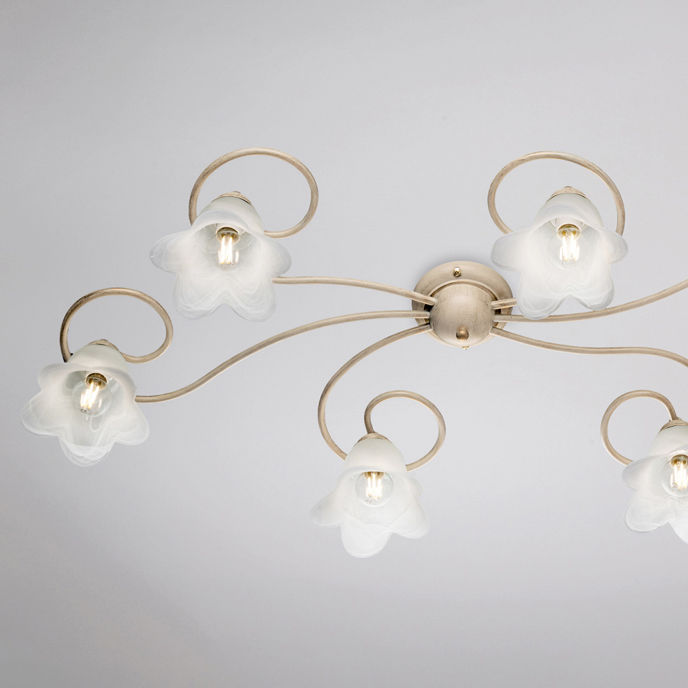 تضفي المواد المختارة بعناية - الحديد والزجاج - لمسةً أنيقةً وإضاءةً مريحة. صُنعت هذه الثريا السقفية بالكامل في إيطاليا، وهي ثمرة حرفية دقيقة تُعزز جمالها ووظائفها على حدٍ سواء.