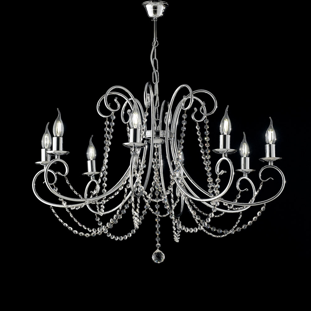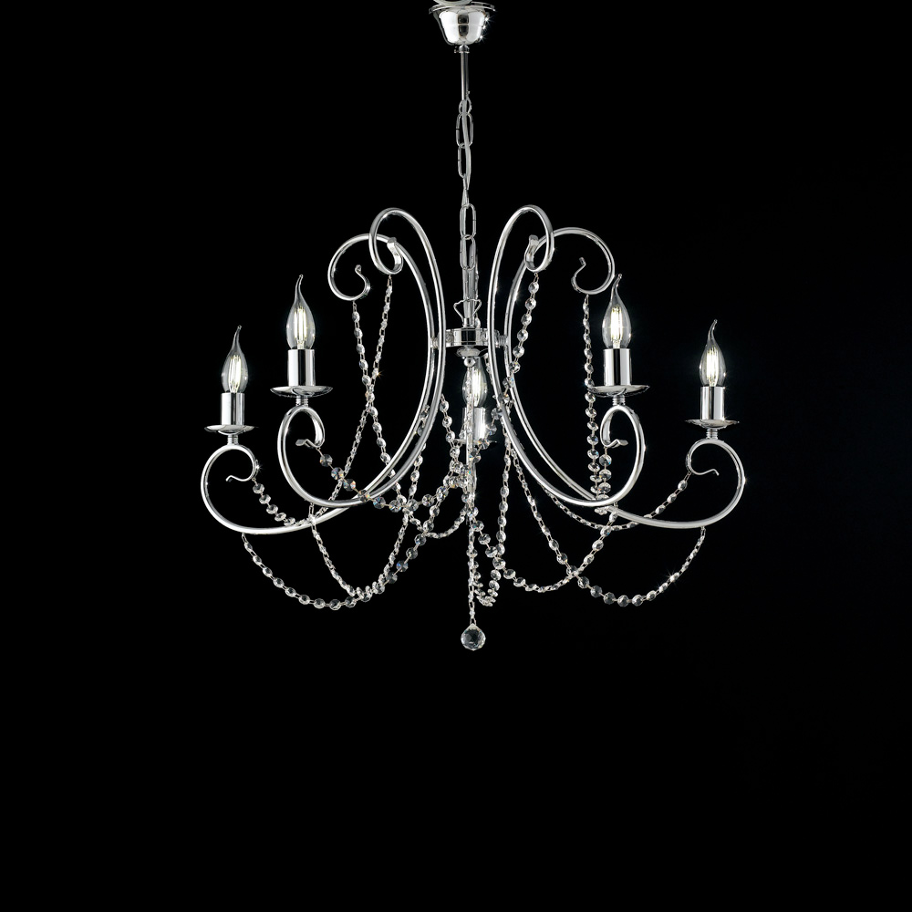 تُعد هذه الثريا الحديدية الكلاسيكية رمزاً للأناقة الخالدة، فهي تأسر الأنظار من النظرة الأولى بخطوطها المتعرجة وأذرعها المصنوعة بدقة وشلالاتها من البلورات المزخرفة التي تعكس الضوء ببريق راقٍ.