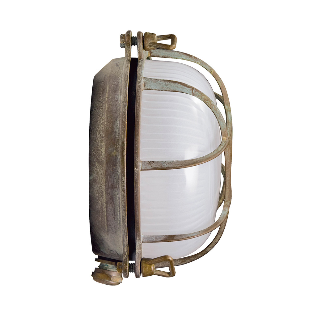 يتميز هذا المصباح الجداري الخارجي بطابع بحري قوي ولمسة صناعية أنيقة ، وهو حل إضاءة مصمم لإضفاء طابع مميز وجمال متين على المساحات الخارجية. يعكس هيكله النحاسي المصنوع يدويًا سحرًا أصيلًا وخالدًا، مما يجعله مثاليًا للتصاميم المعمارية الراقية.