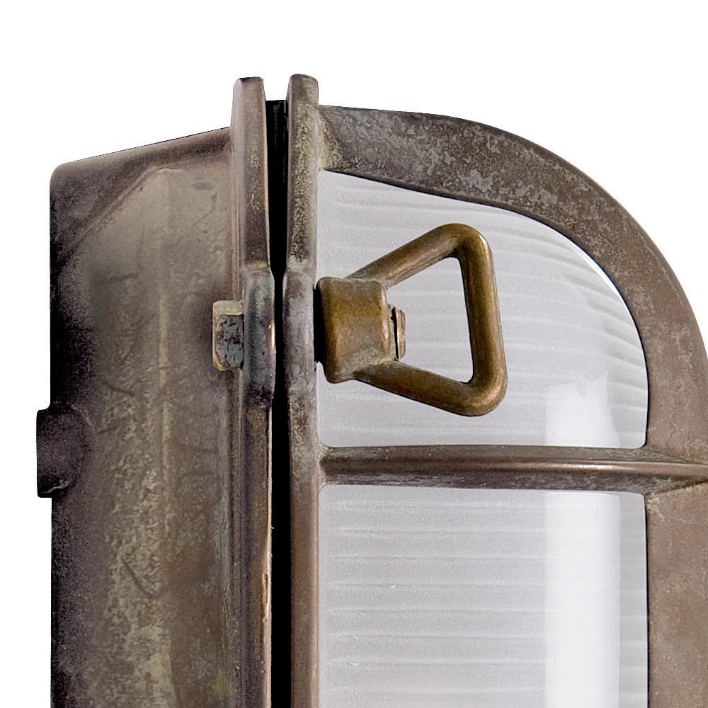 يتميز هذا المصباح الجداري الخارجي بطابع بحري قوي ولمسة صناعية أنيقة ، وهو حل إضاءة مصمم لإضفاء طابع مميز وجمال متين على المساحات الخارجية. يعكس هيكله النحاسي المصنوع يدويًا سحرًا أصيلًا وخالدًا، مما يجعله مثاليًا للتصاميم المعمارية الراقية.