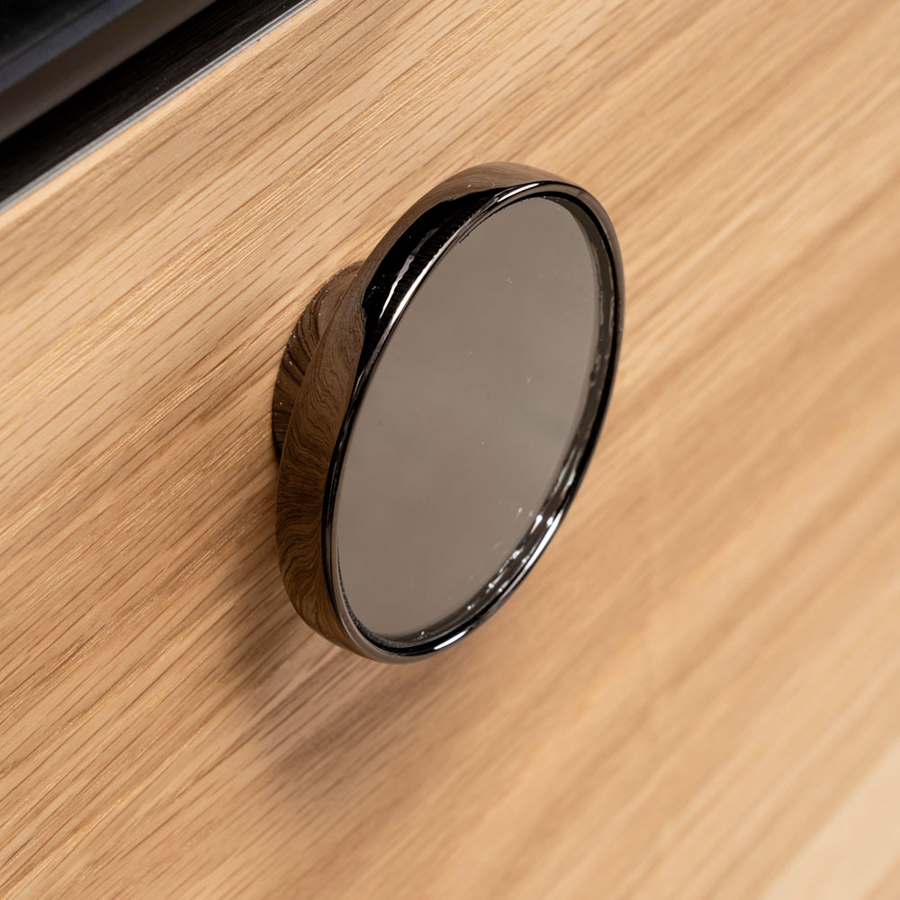 يتميز الدرج الخارجي بمقبض معدني مصقول مع مرآة مثبتة بنفس اللمسة النهائية.