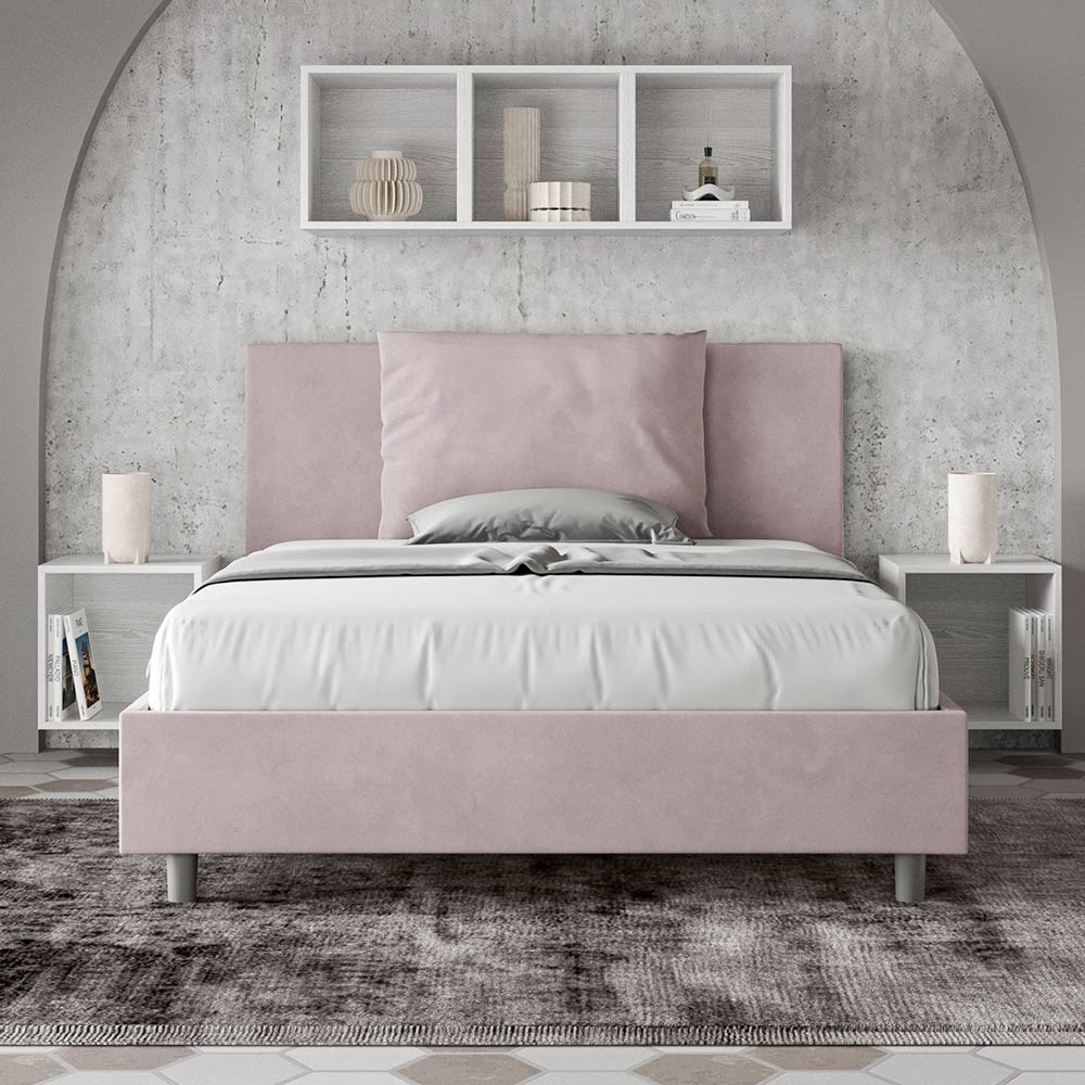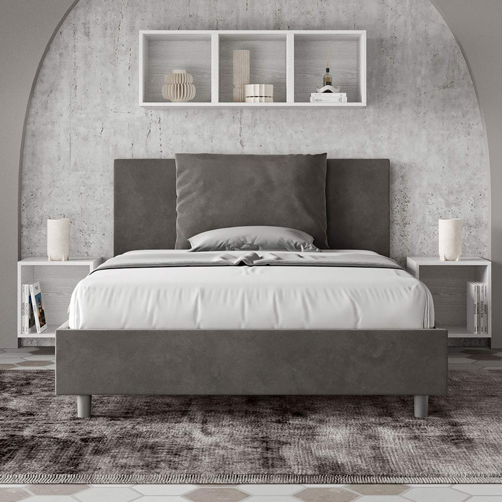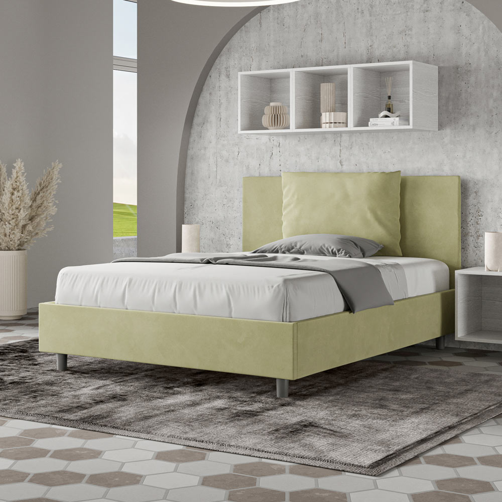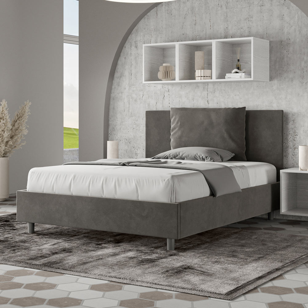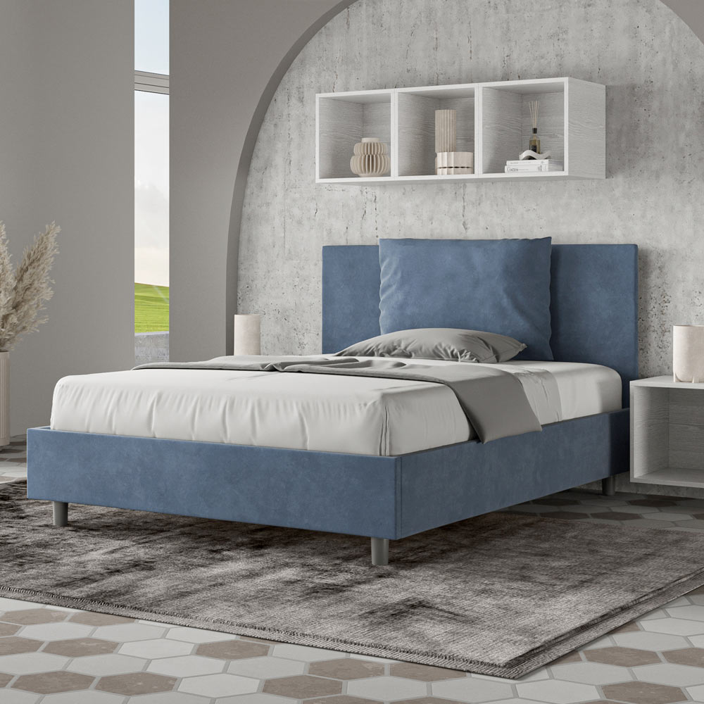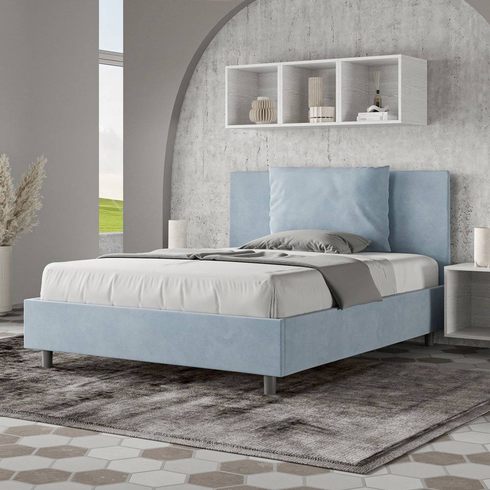 سرير فرنسي مقاس 140 × 200 سم، مبطن ومغطى بألياف دقيقة، صنع في إيطاليا