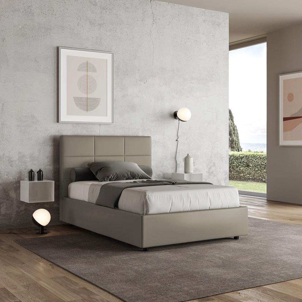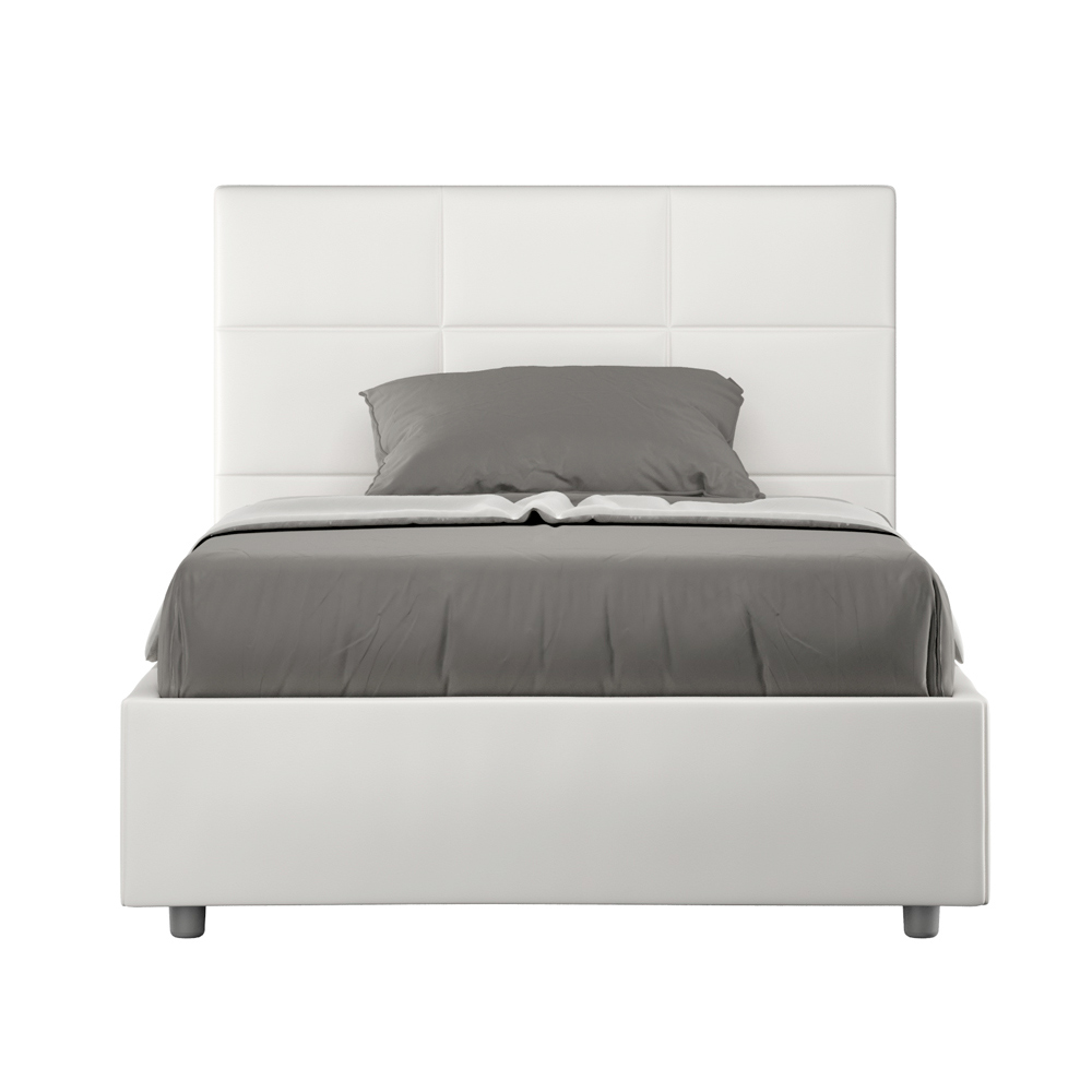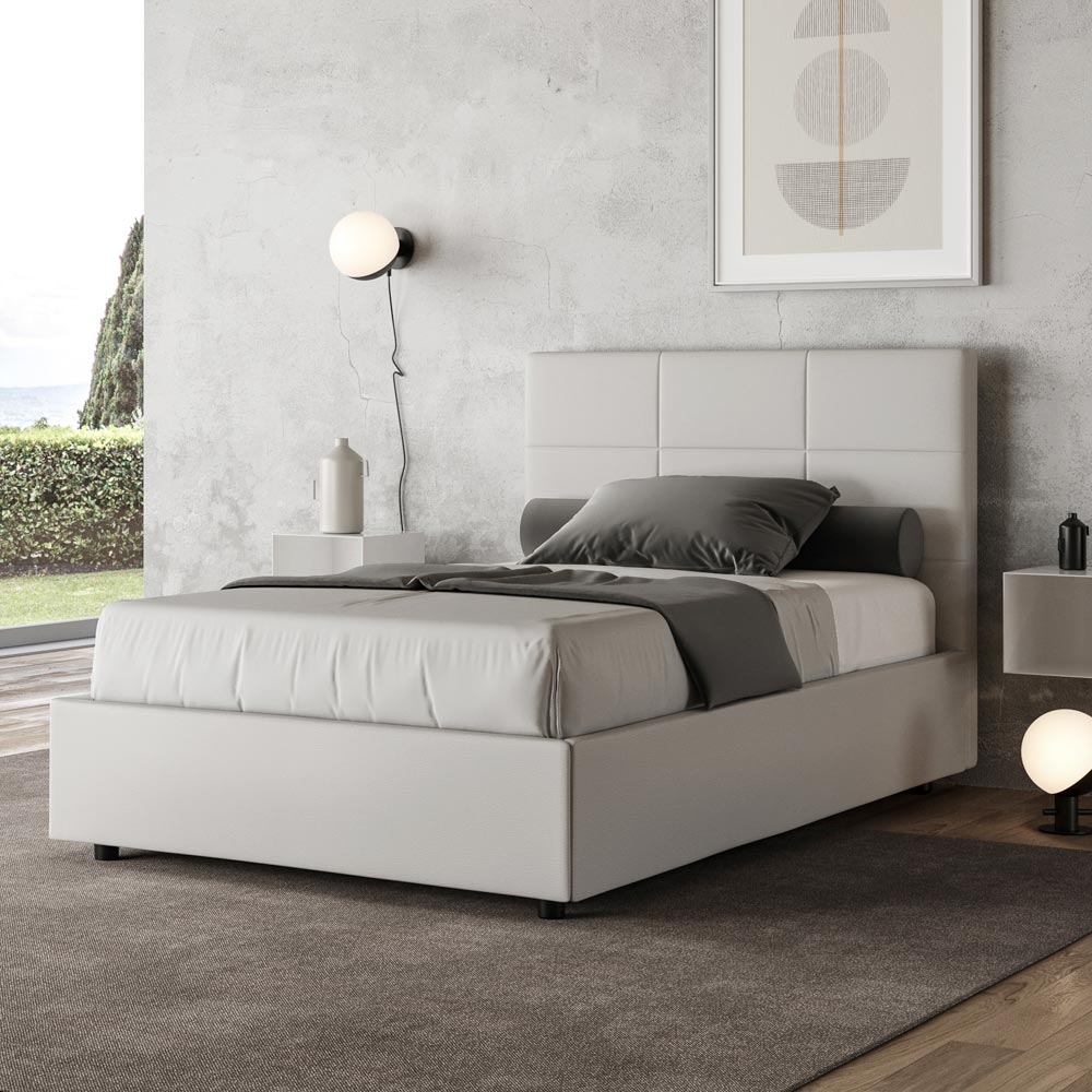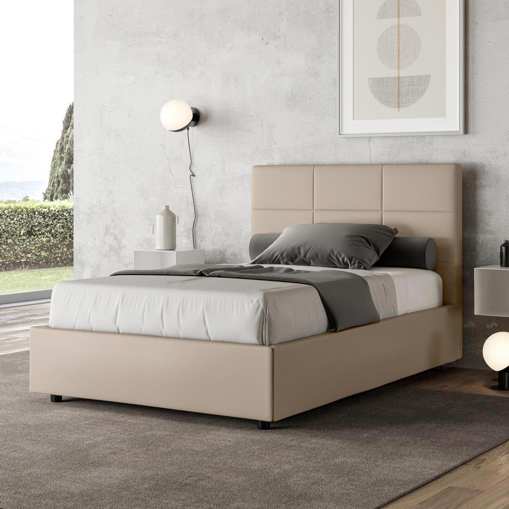 سرير فرنسي مقاس 140 × 200 سم، مبطن ومُنجّد بالجلد الصناعي، صنع في إيطاليا