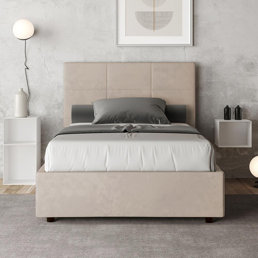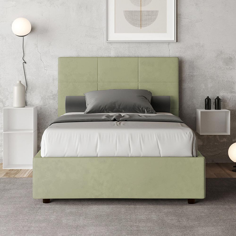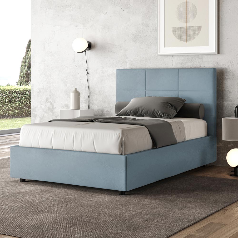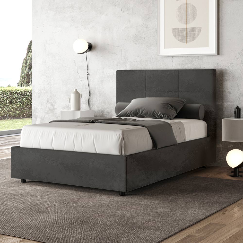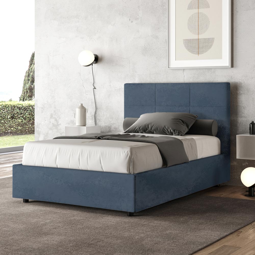 سرير فرنسي مقاس 140 × 200 سم، مبطن ومغطى بألياف دقيقة، صنع في إيطاليا