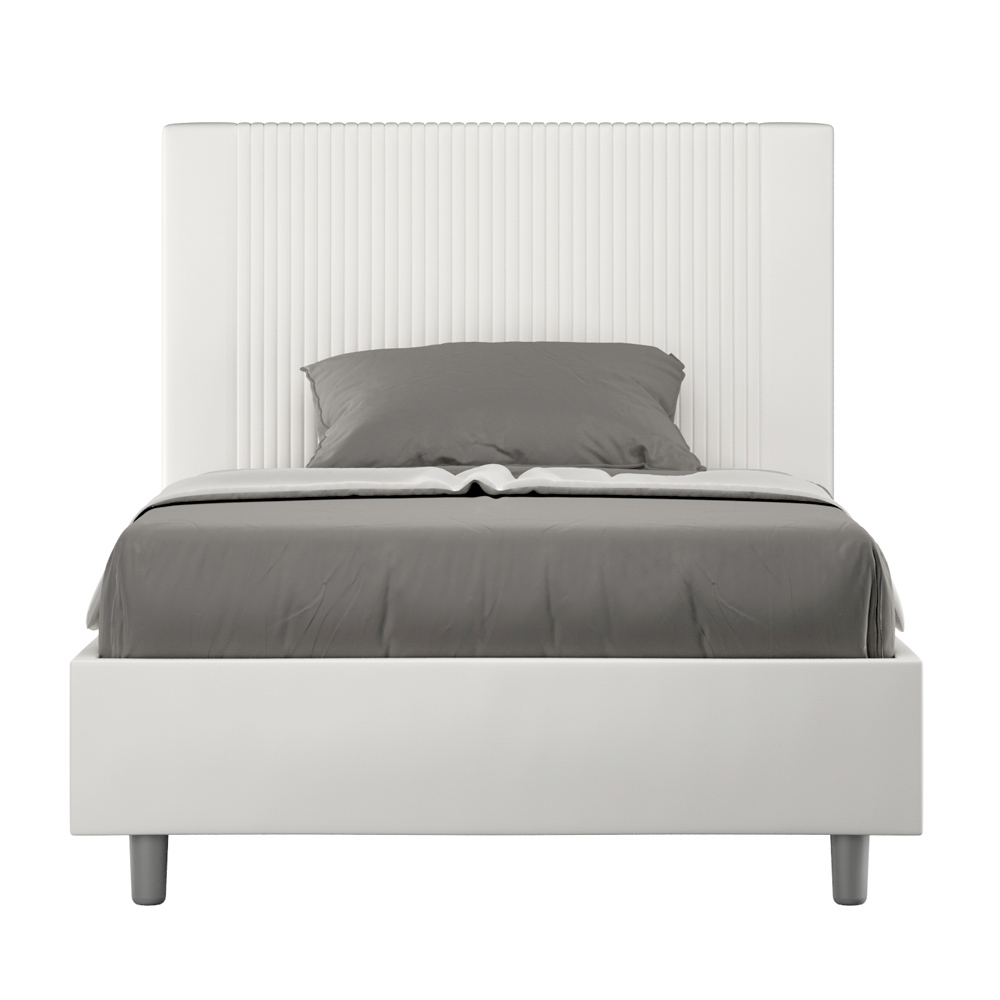 سرير فرنسي مقاس 140 × 200 سم، مبطن ومُنجّد بالجلد الصناعي، صنع في إيطاليا