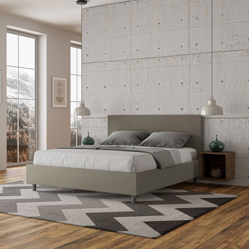 سرير مزدوج مبطن بمقاس 160 × 200 سم مغطى بجلد صناعي، صنع في إيطاليا