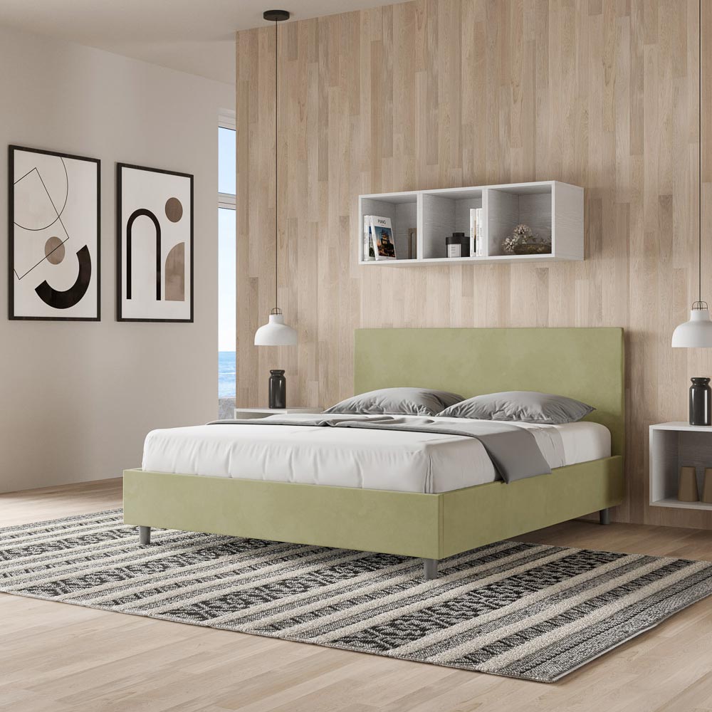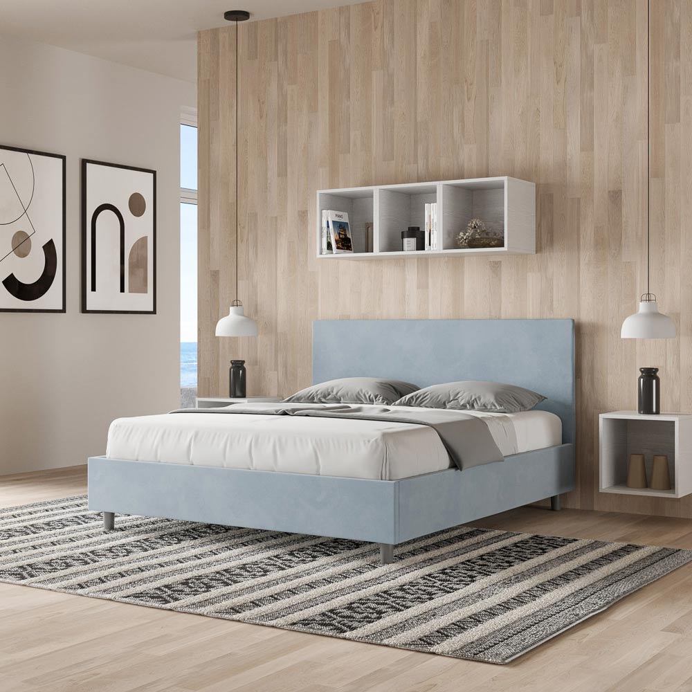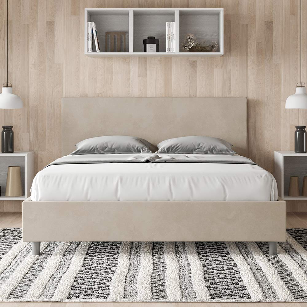 سرير مزدوج مقاس 160 × 200 سم، مبطن ومغطى بألياف دقيقة، صنع في إيطاليا