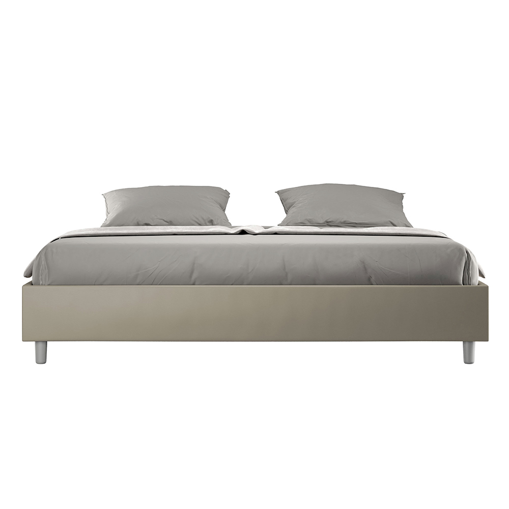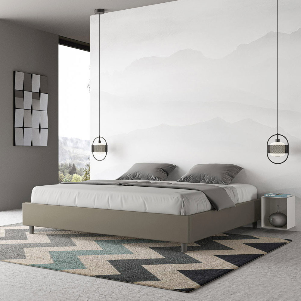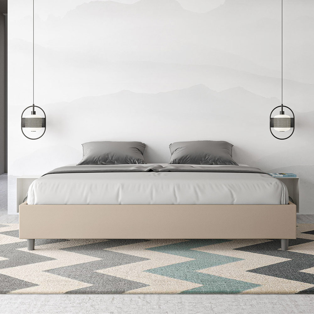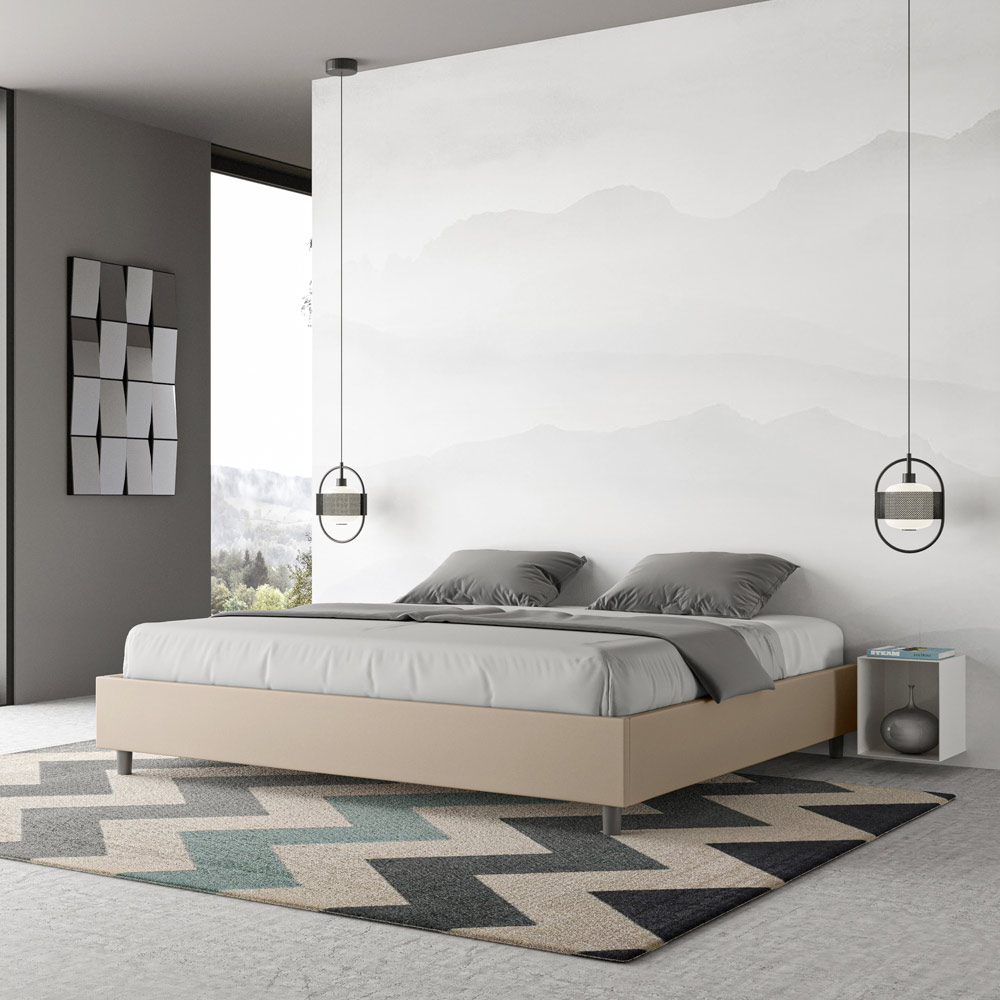 سرير بحجم كينج 180 × 200 سم مبطن مصنوع من ألواح الميلامين ومغطى بالجلد الصناعي ، صنع بالكامل في إيطاليا. يتميز هذا السرير بحجم كينغ بتصميمه الأنيق والبسيط . جماله الهادئ وتعدد استخداماته يجعلان من السهل دمجه في أي مكان. من أبرز سماته غياب اللوح الأمامي التقليدي ، مما يجعله مثالياً لوضعه في أماكن مميزة، مثل أسفل النافذة، أو في العلية، أو بالقرب من جدار مزخرف، دون حجب المنظر أو التأثير المطلوب.
