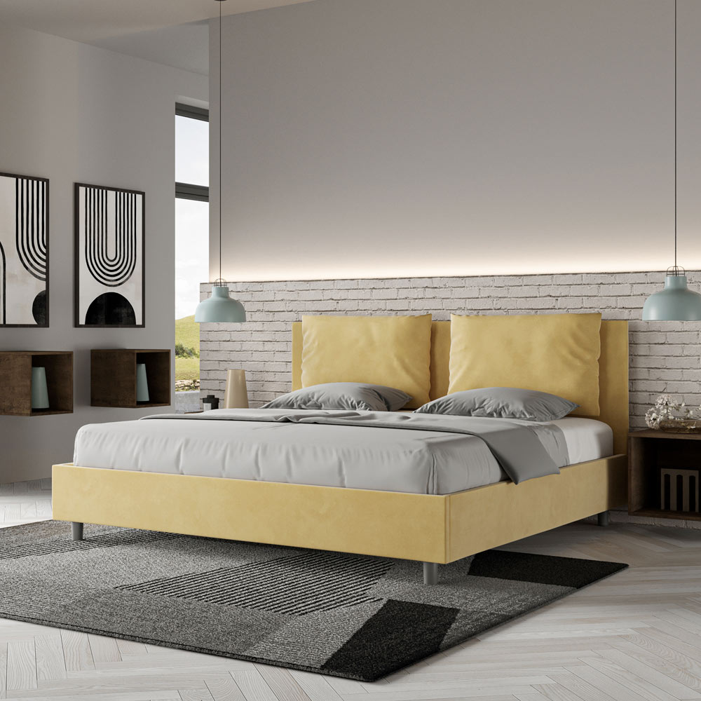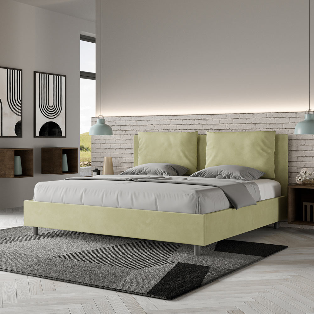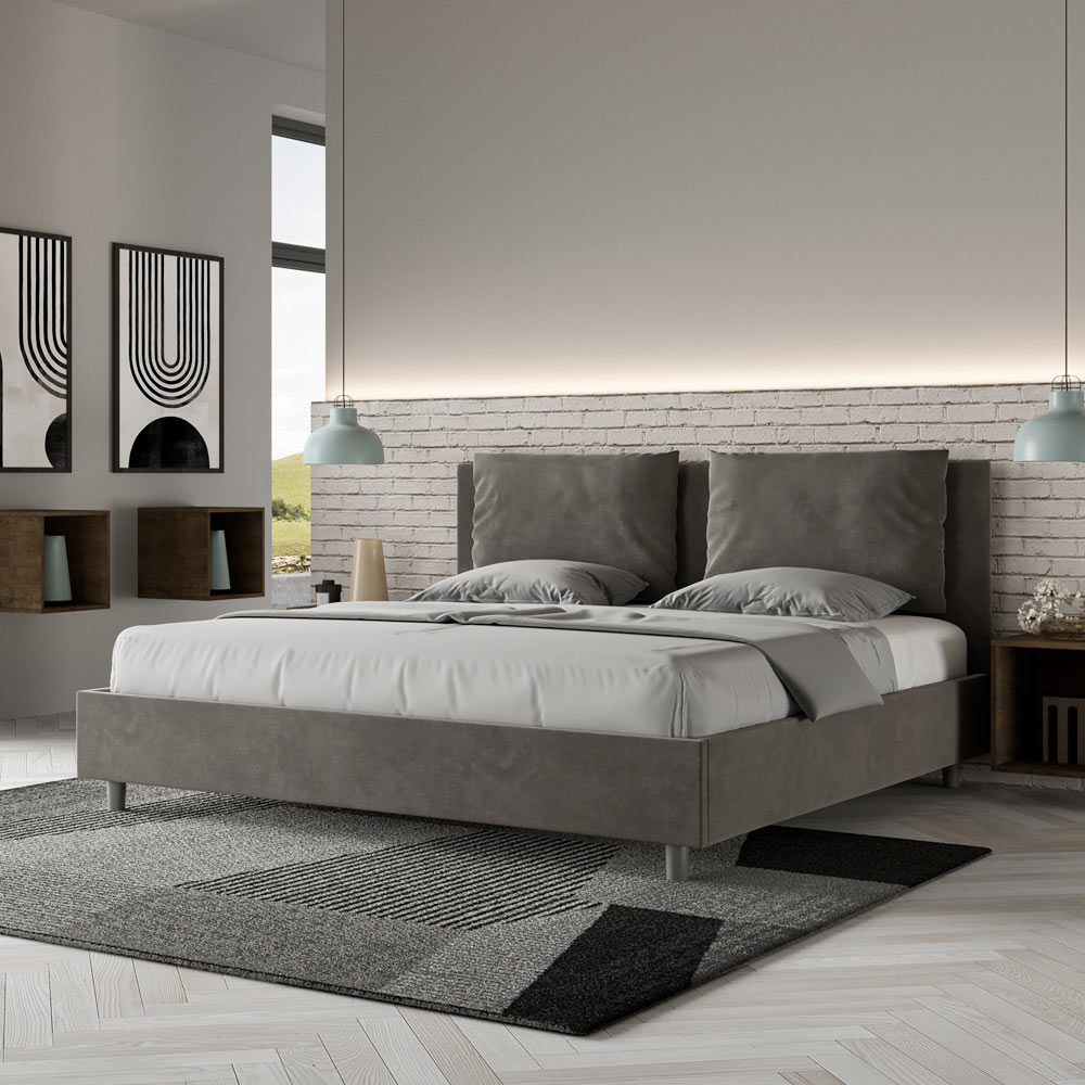 سرير بحجم كينج 180×200 سم، مبطن ومغطى بألياف دقيقة، صنع في إيطاليا