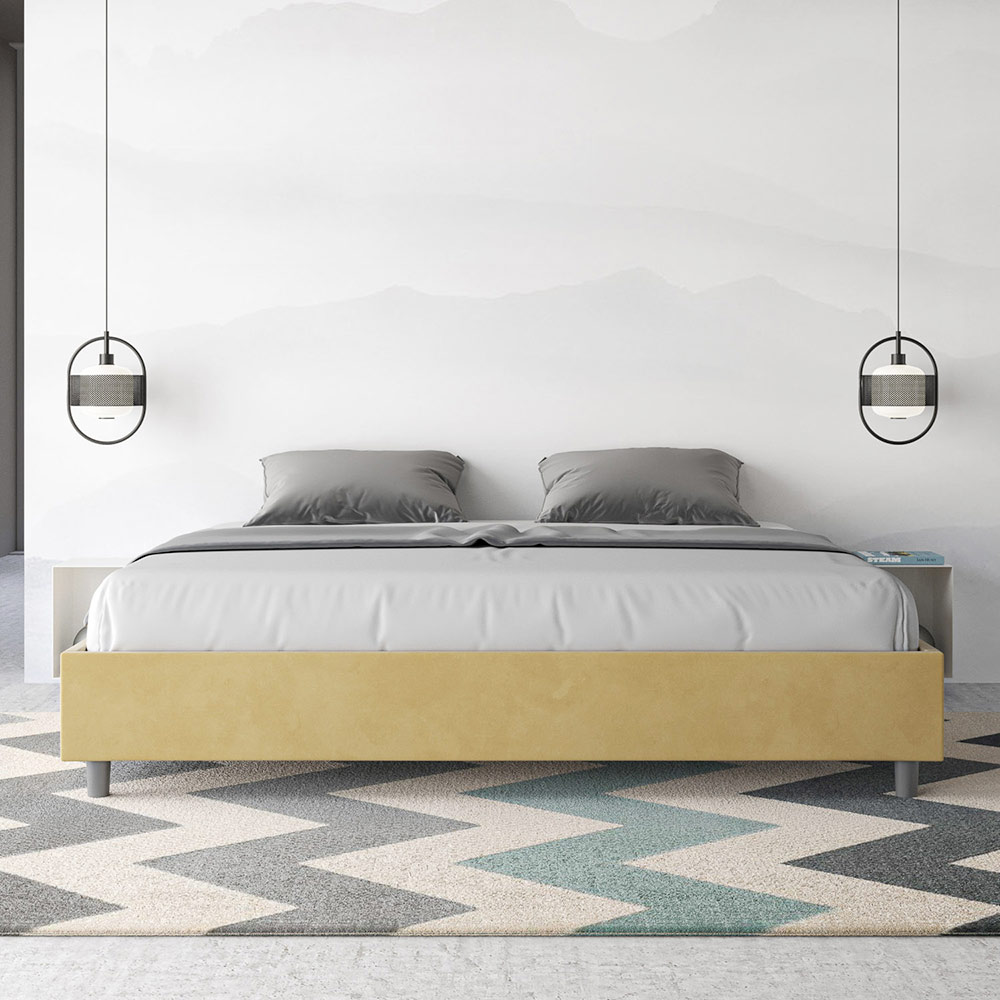 سرير بحجم كينج 190 × 200 سم مبطن مصنوع من ألواح الميلامين ومغطى بالألياف الدقيقة ، صنع بالكامل في إيطاليا. يتميز هذا السرير بحجم كينغ بتصميمه الأنيق والبسيط . جماله الهادئ وتعدد استخداماته يجعلان من السهل دمجه في أي مكان. من أبرز سماته غياب اللوح الأمامي التقليدي ، مما يجعله مثالياً لوضعه في أماكن مميزة، مثل أسفل النافذة، أو في العلية، أو بالقرب من جدار مزخرف، دون حجب المنظر أو التأثير المطلوب.