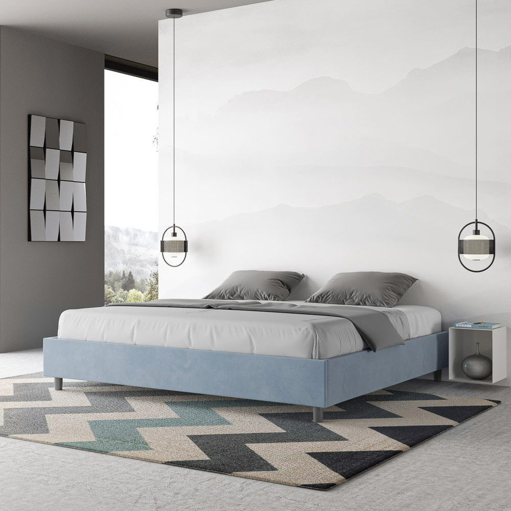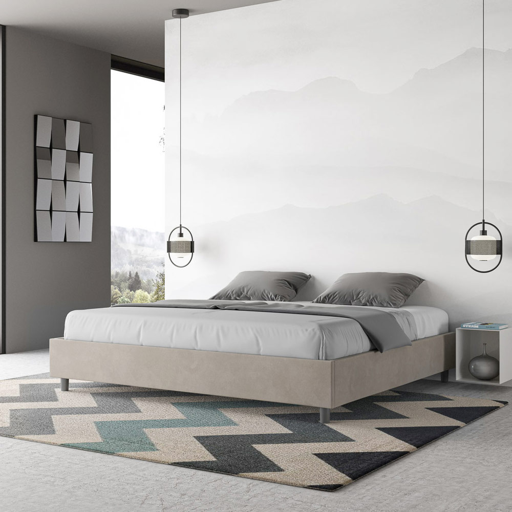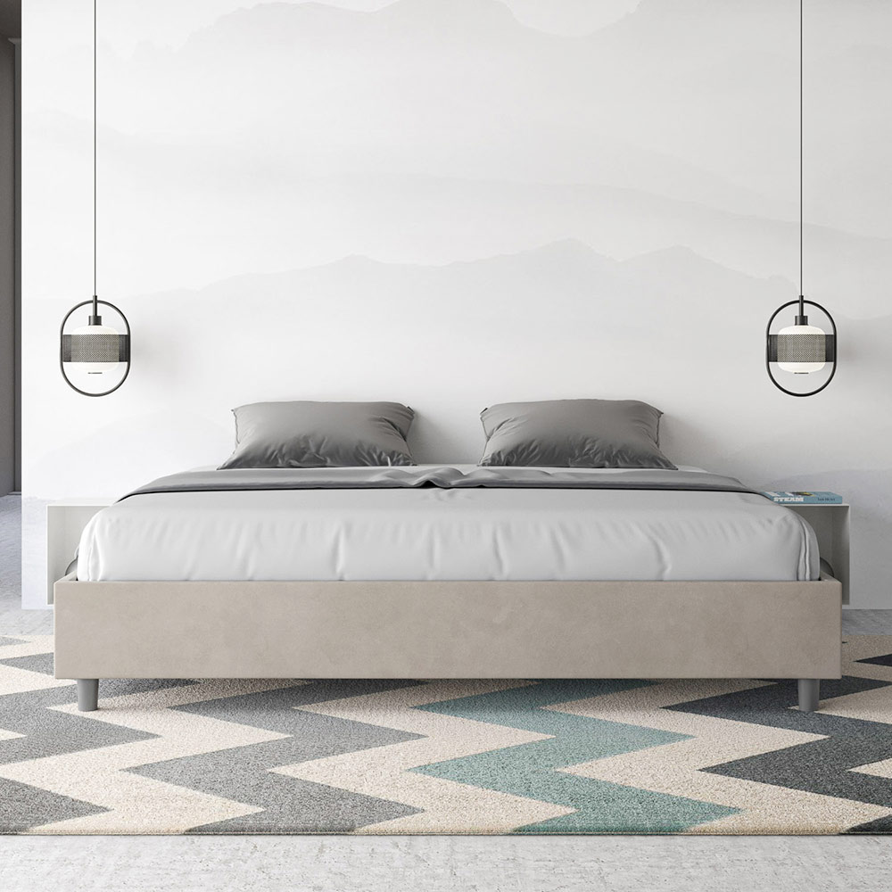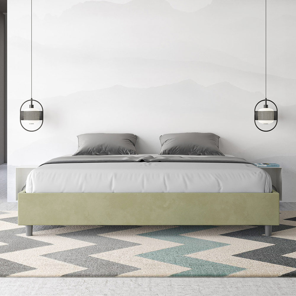 سرير بحجم سوبر كينج 200x200 سم مبطن مصنوع من ألواح الميلامين ومغطى بالألياف الدقيقة ، صنع بالكامل في إيطاليا. يتميز هذا السرير الكبير جدًا بتصميمه الأنيق والبسيط . جماله البسيط وتعدد استخداماته يجعلان من السهل دمجه في أي مكان. من أبرز سماته غياب اللوح الأمامي التقليدي ، مما يجعله مثاليًا لوضعه في أماكن مميزة، مثل أسفل النافذة، أو في العلية، أو بالقرب من جدار مزخرف، دون حجب المنظر أو التأثير المطلوب.