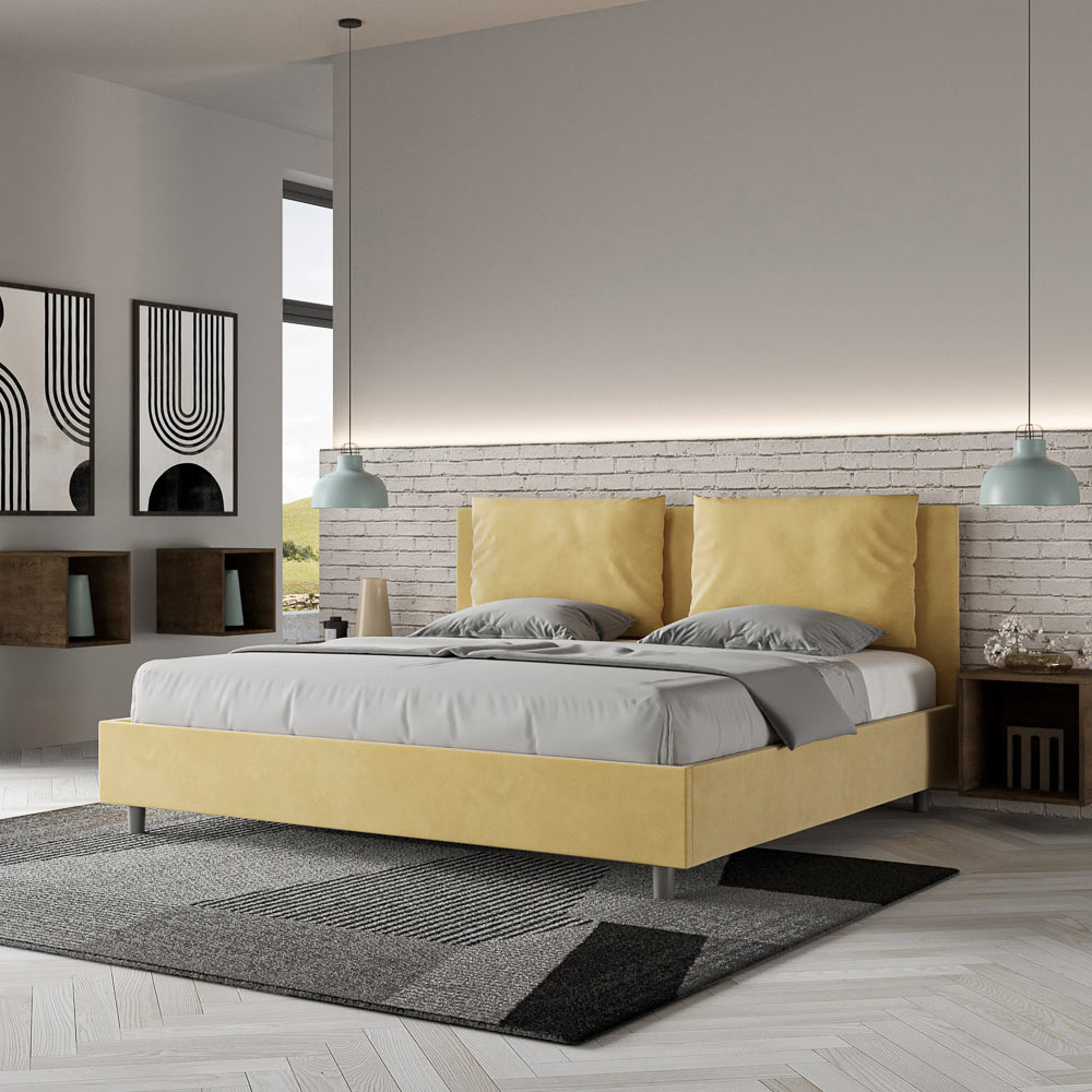 سرير بحجم سوبر كينج 200×200 سم، مبطن ومغطى بألياف دقيقة، صنع في إيطاليا