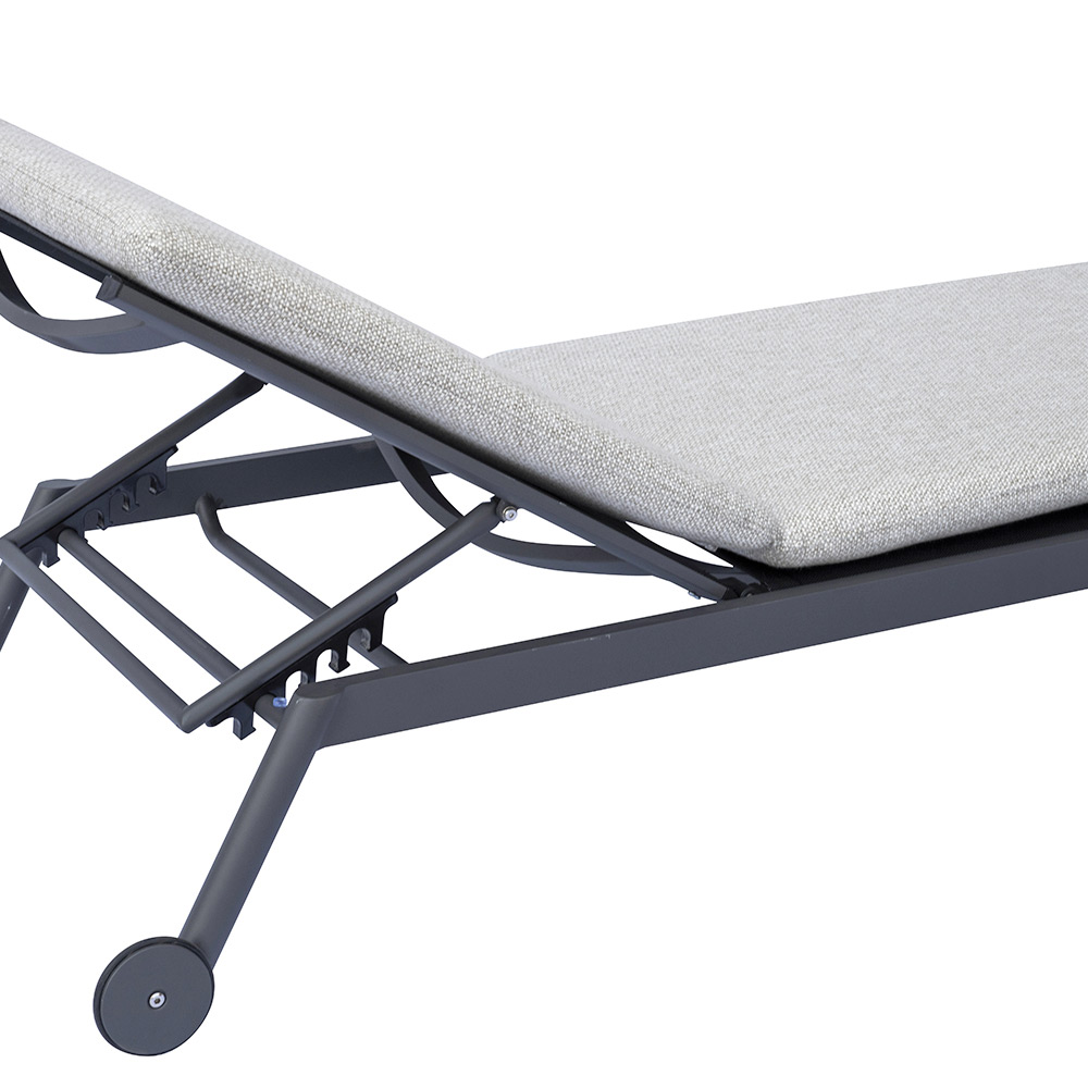 يجمع هذا الكرسي بين الراحة والأناقة والعملية ، ليقدم الحل الأمثل للاستمتاع بلحظات استرخاء تام في الهواء الطلق. مصنوع من إطار وعجلات من الألومنيوم ، خفيف الوزن، متين، وسهل النقل، مثالي للحدائق والتراسات وحمامات السباحة.