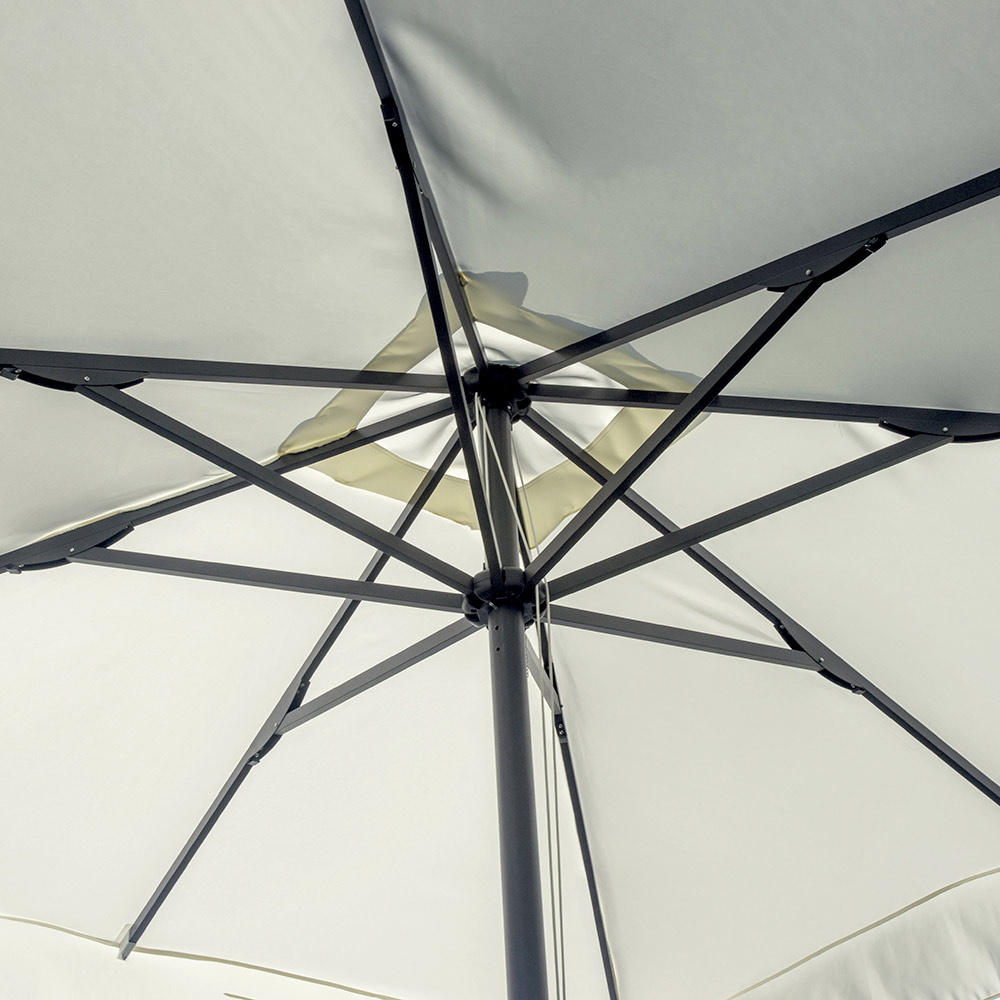 بارتفاع أقصى يبلغ 2.85 متر (مع القاعدة) ، هذه المظلة مناسبة تمامًا للحدائق والتراسات والمناطق الخارجية للأندية أو مساحات التعاقد، حيث توفر منطقة مظللة أنيقة وترحيبية.