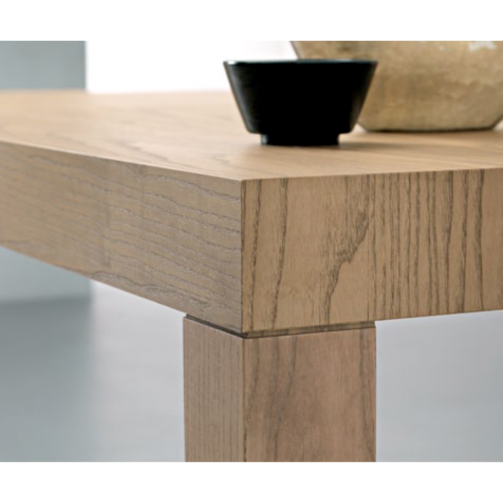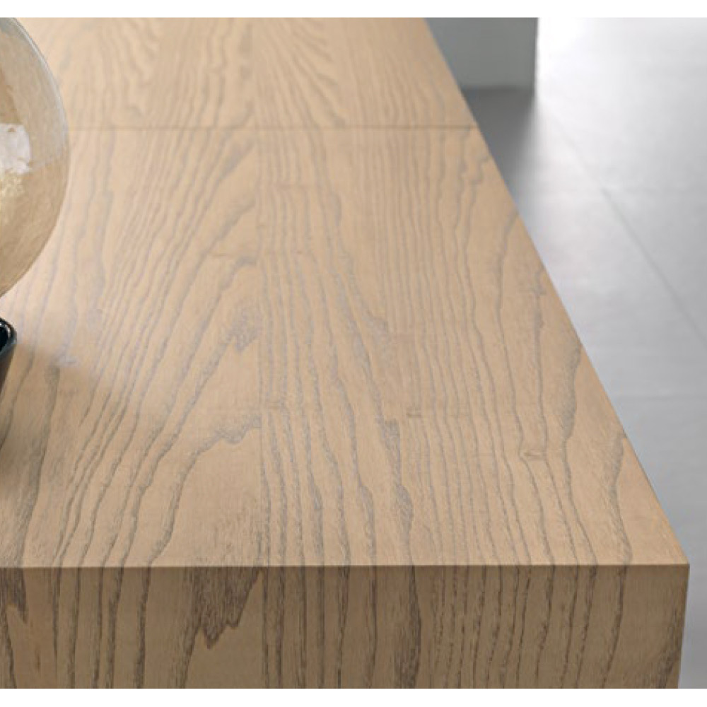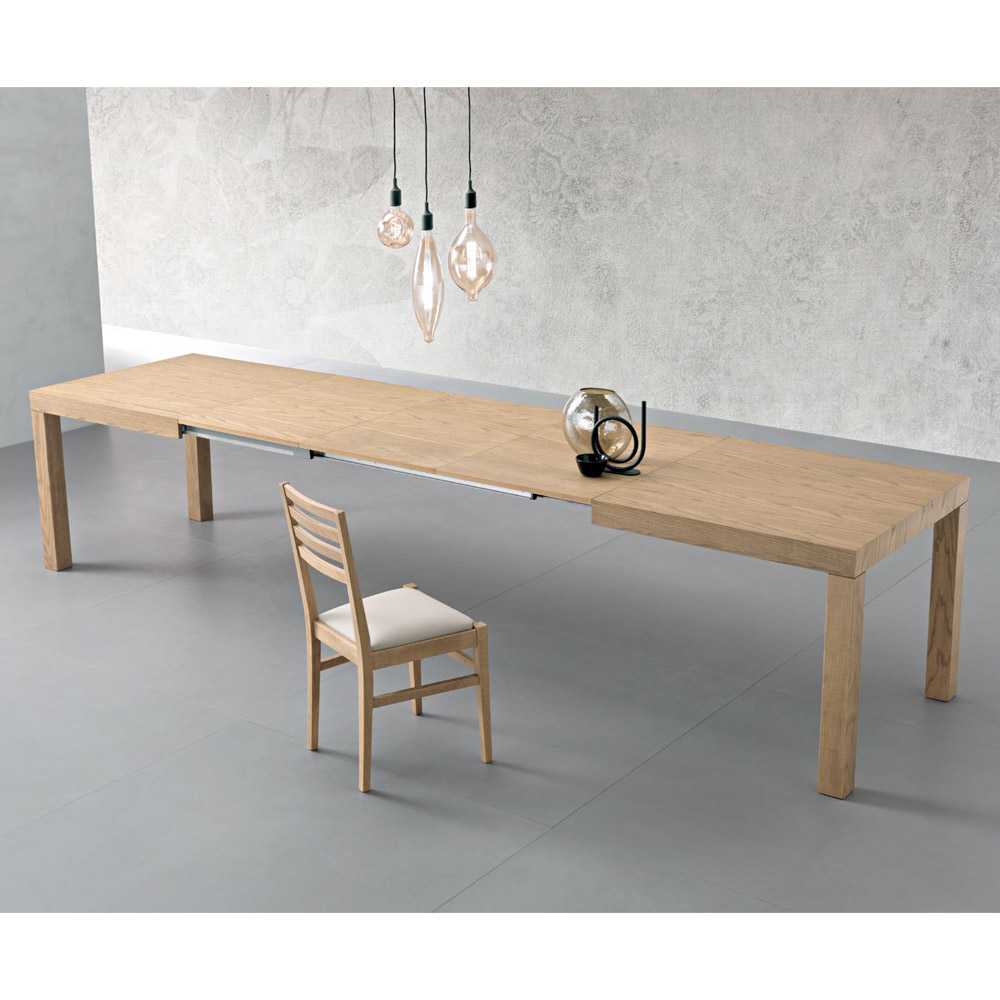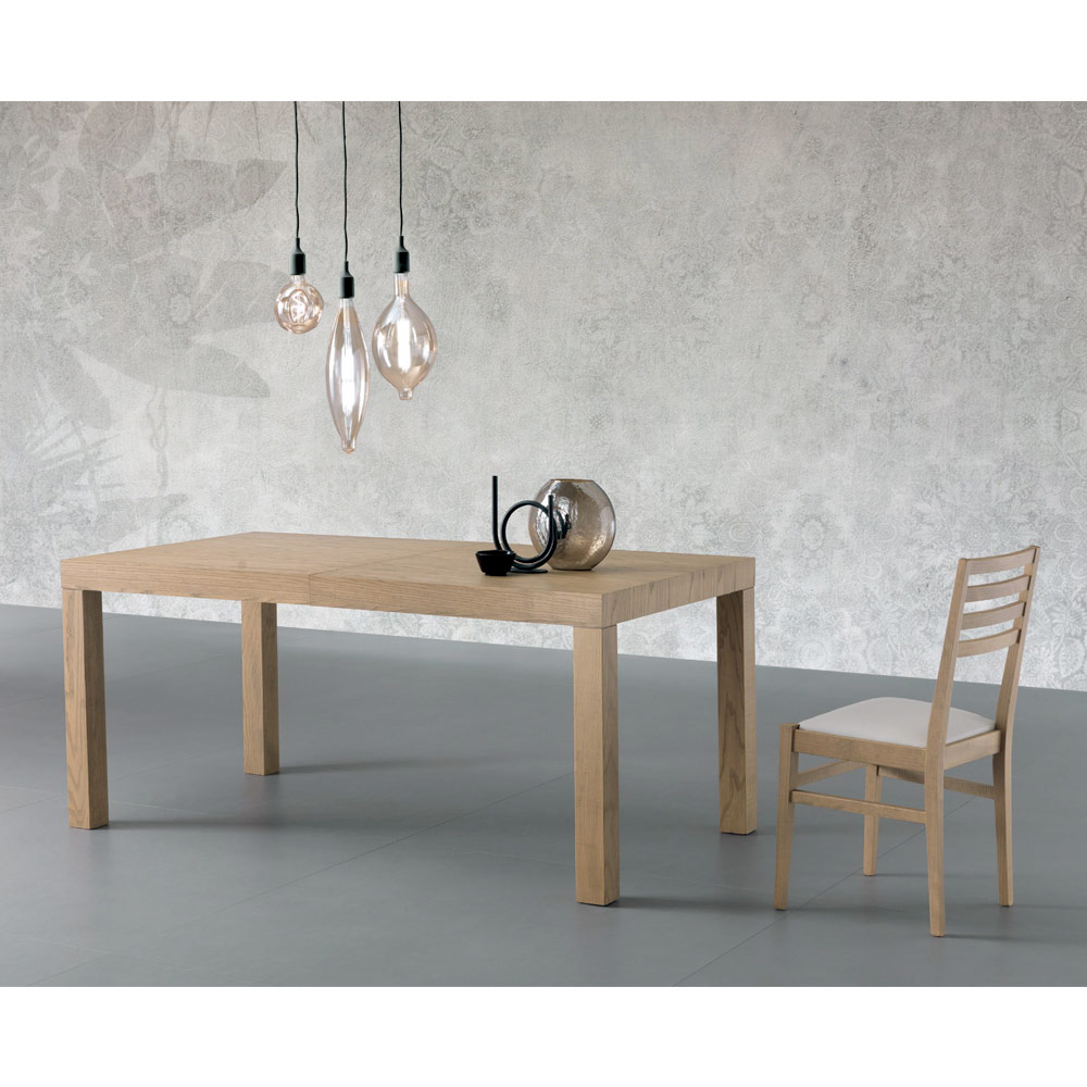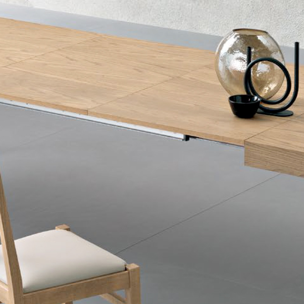 طاولة مستطيلة قابلة للتمديد مع سطح من خشب الدردار. سمكها 80 مم، قابلة للطي.
