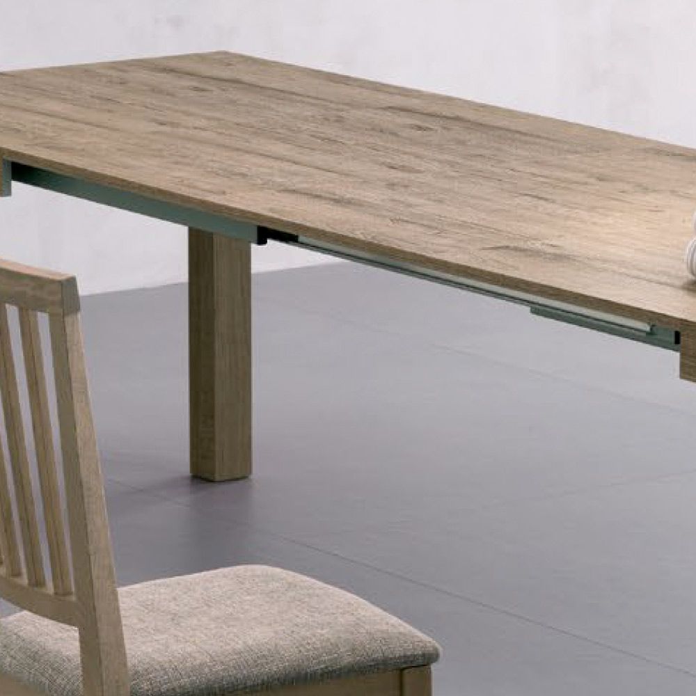 أرجل من الخشب الصلب مغطاة بالصفائح، ومجهزة بعجلات ومكتملة بإطار من الألومنيوم المطلي المزود بأجهزة دوارة من التفلون تجعل الفتح والإغلاق المركزي للطاولة صامتًا وسلسًا.